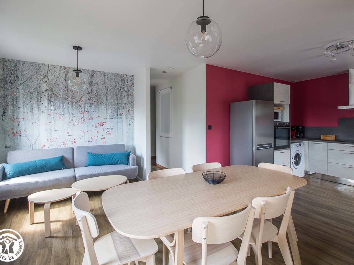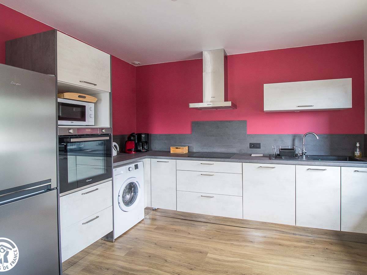 Le gîte se compose d’un lumineux et confortable séjour avec cuisine ouverte, d’une chambre avec un lit 140, d’une chambre avec deux lits 90, d’une salle d’eau et d’un wc indépendant.