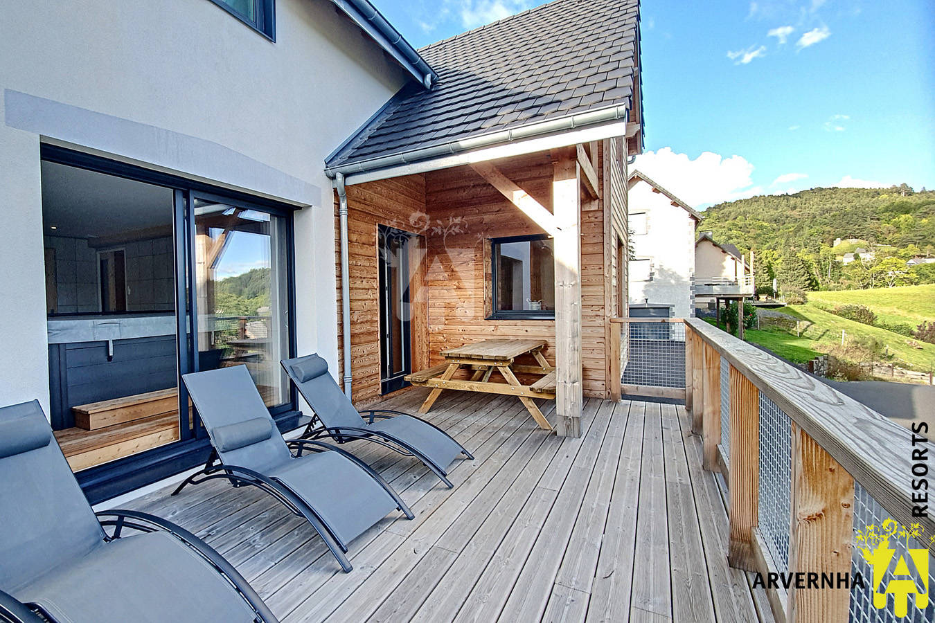 Venez vous ressourcez dans le spa 6 places avec sa magnifique vue sur le lac et le massif du Sancy. Ce gîte de plus de 100m2 vous offre une pièce de vie spacieuse avec cuisine équipée, coin salon et poêle à bois.