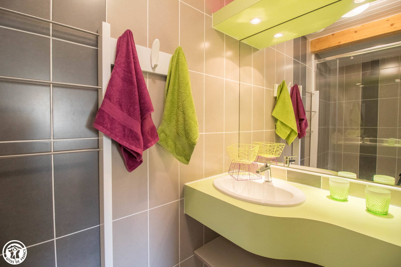 au premier, 2 chambres avec salles de bains privatives (l’une avec 1 lit de 140 et l’autre avec 1 lit de 140 et 2 lits superposés) ainsi qu’un WC.