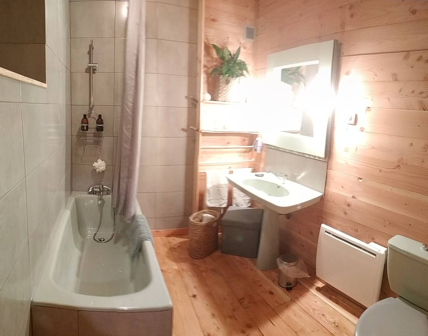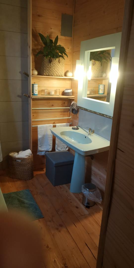 La salle de bain est équipée d’une baignoire. Les WC sont intégrés dans la salle de bain.