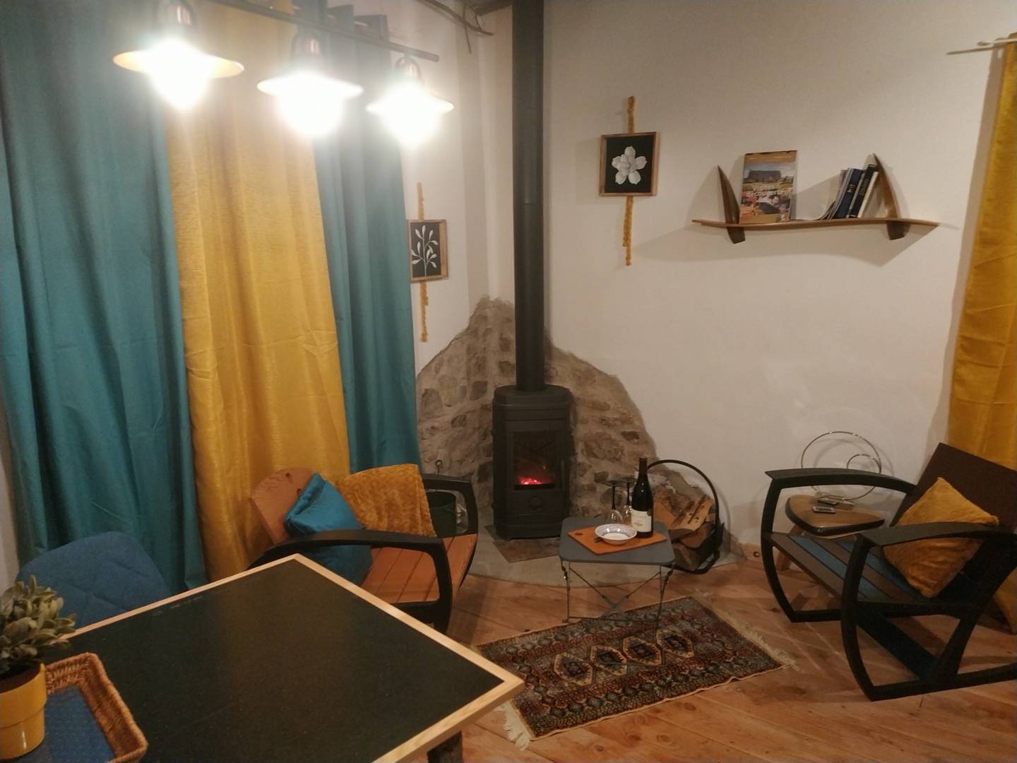 En saison froide, le gite est chauffé par un poêle à bois et un radiateur d’appoint pour la salle de bain. Nous fournissons le bois de chauffage.
