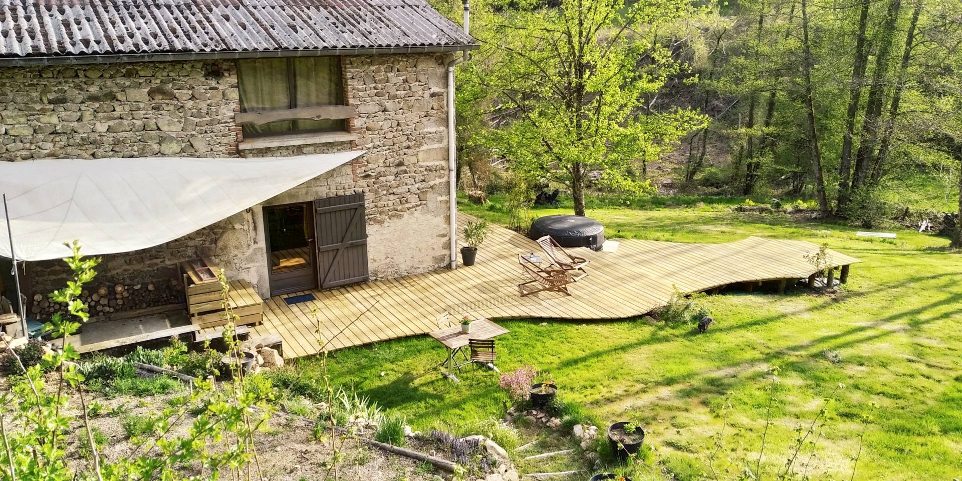 Vous pourrez vous prélasser sur des chaises longues sur une grande terrasse bois et pourquoi pas vous préparer un barbecue, le soir venu.