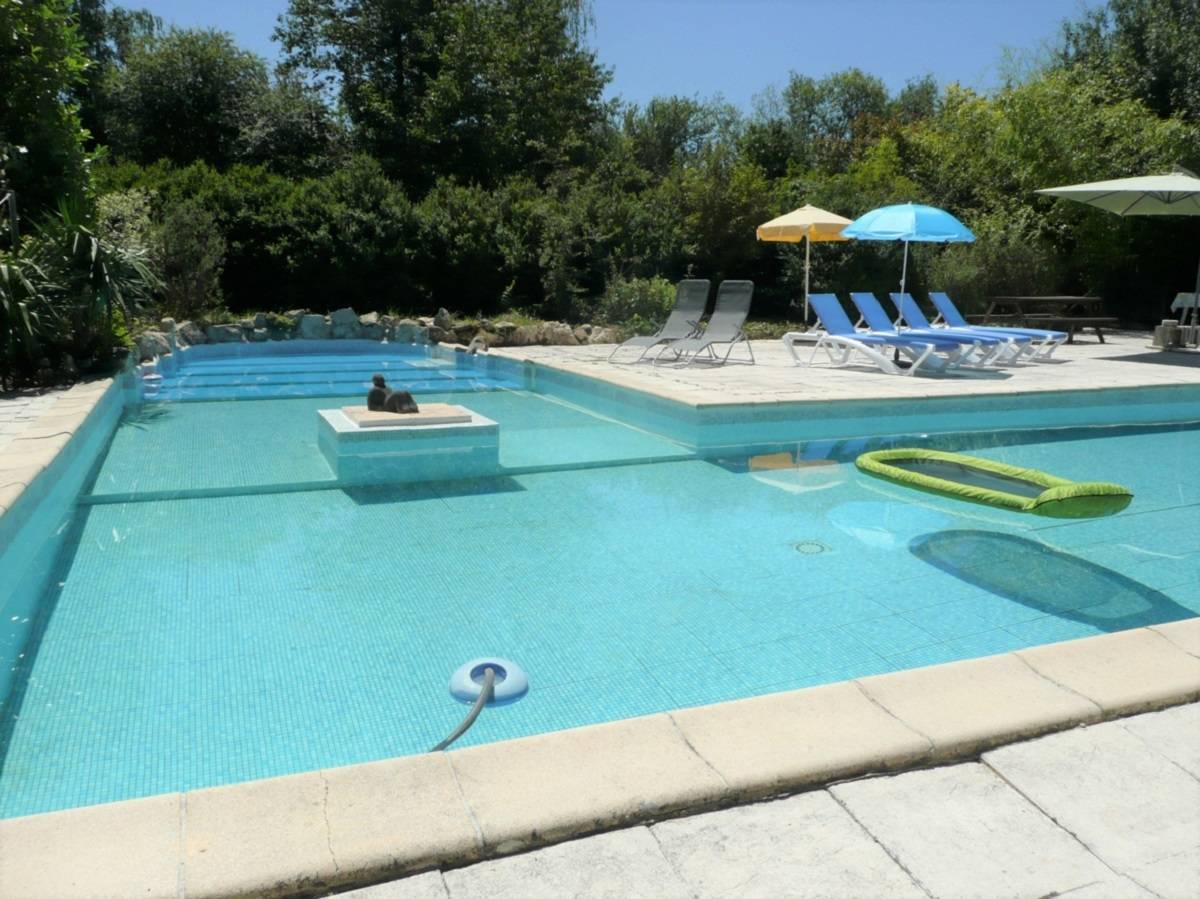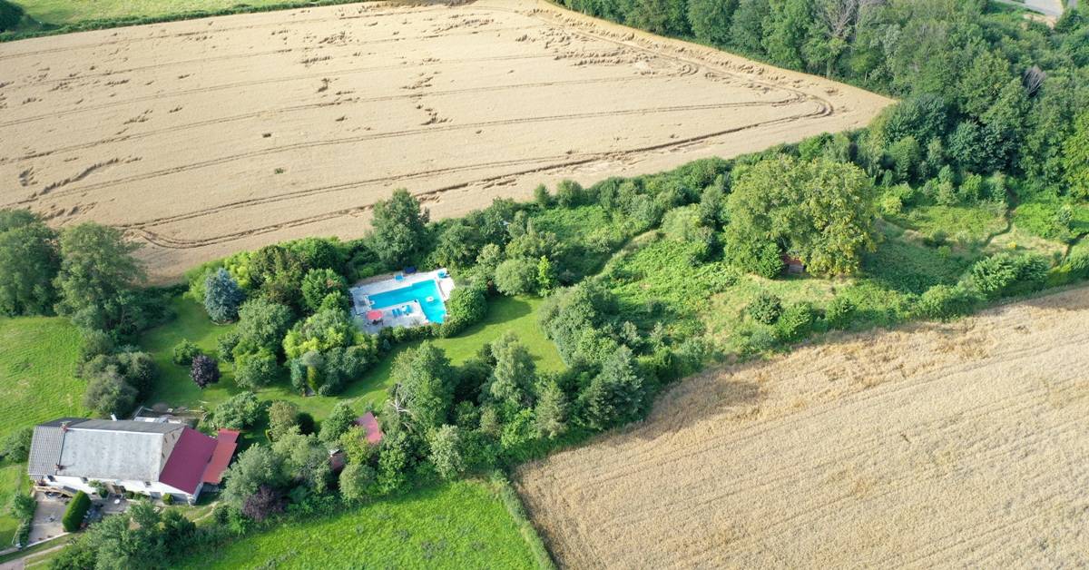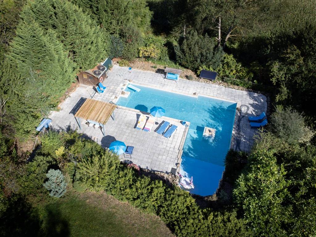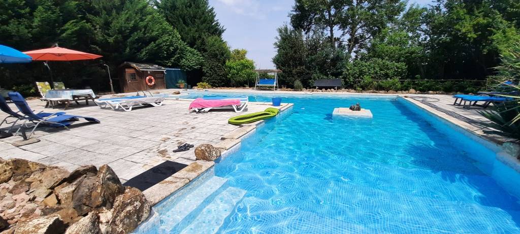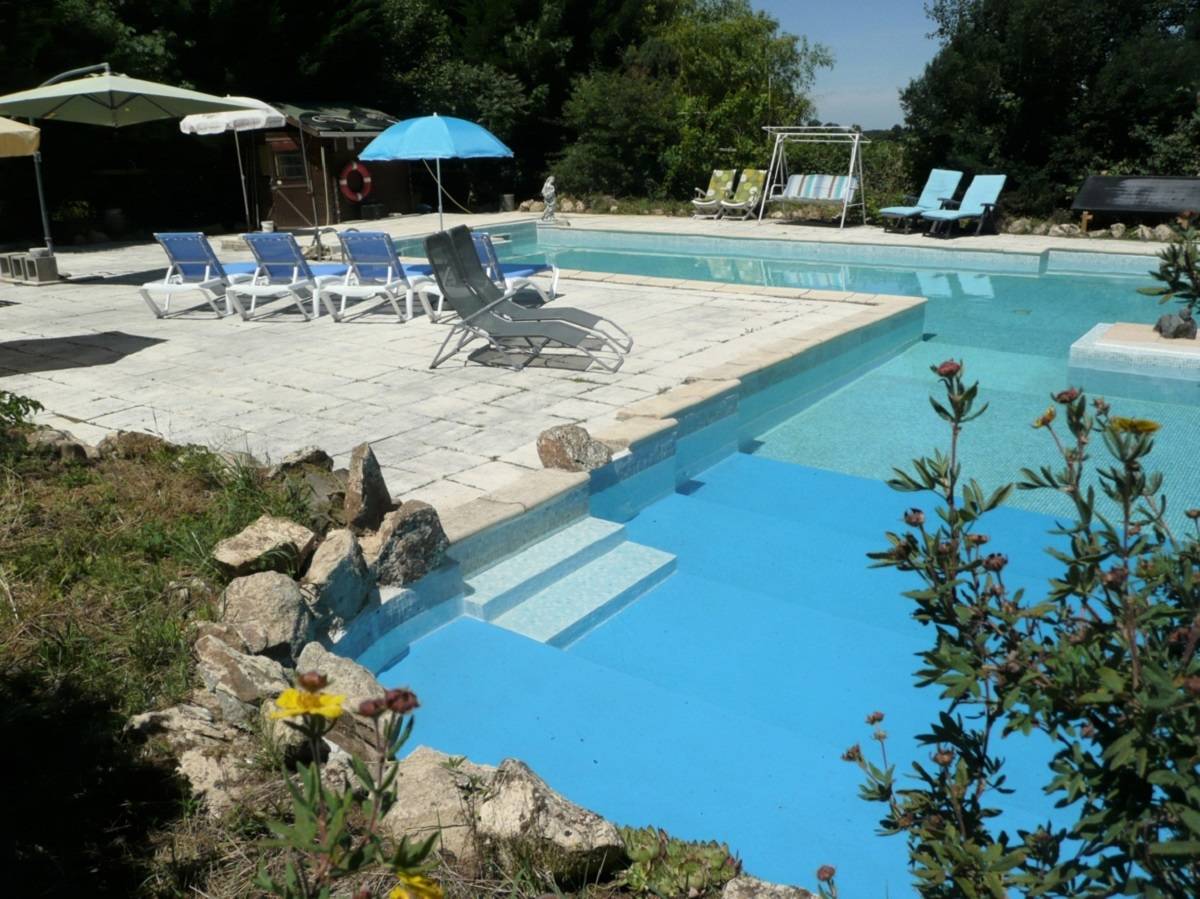 Le terrain est en grande partie clôturé avec une grande haie abritant du vent. Depuis le gîte, au bord de la piscine et de plusieurs endroits de la propriété, il y a des belles vues panoramiques sur les environs pittoresques et vallonnés. Des coins de détente et des bancs ont(…)