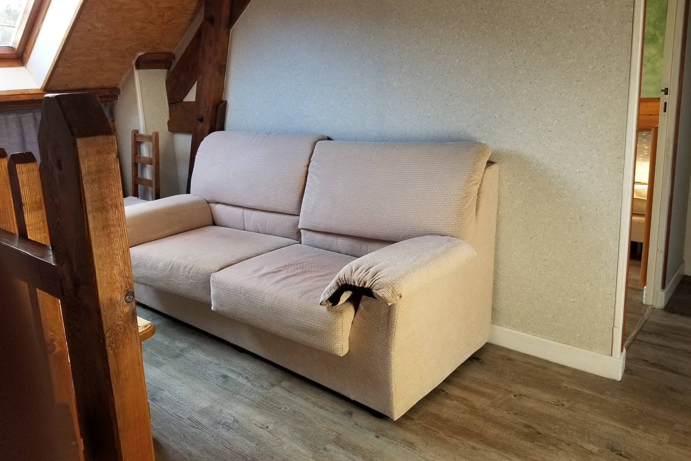 Le gîte est mitoyen avec une grange vide et sans activité. Au RDC, grande salle de séjour avec coin cuisine, cheminée avec insert, une chambre avec un lit 150 et une salle de douche adapté PMR. WC séparé. Au 1er étage mansardé, deux chambres avec lits 150, une chambre avec(…)