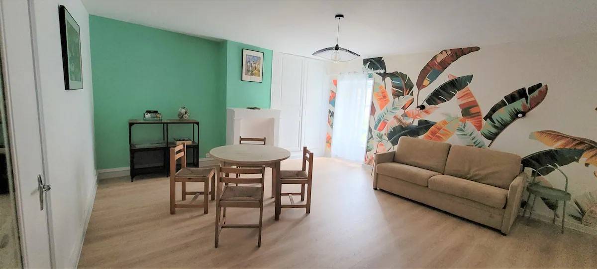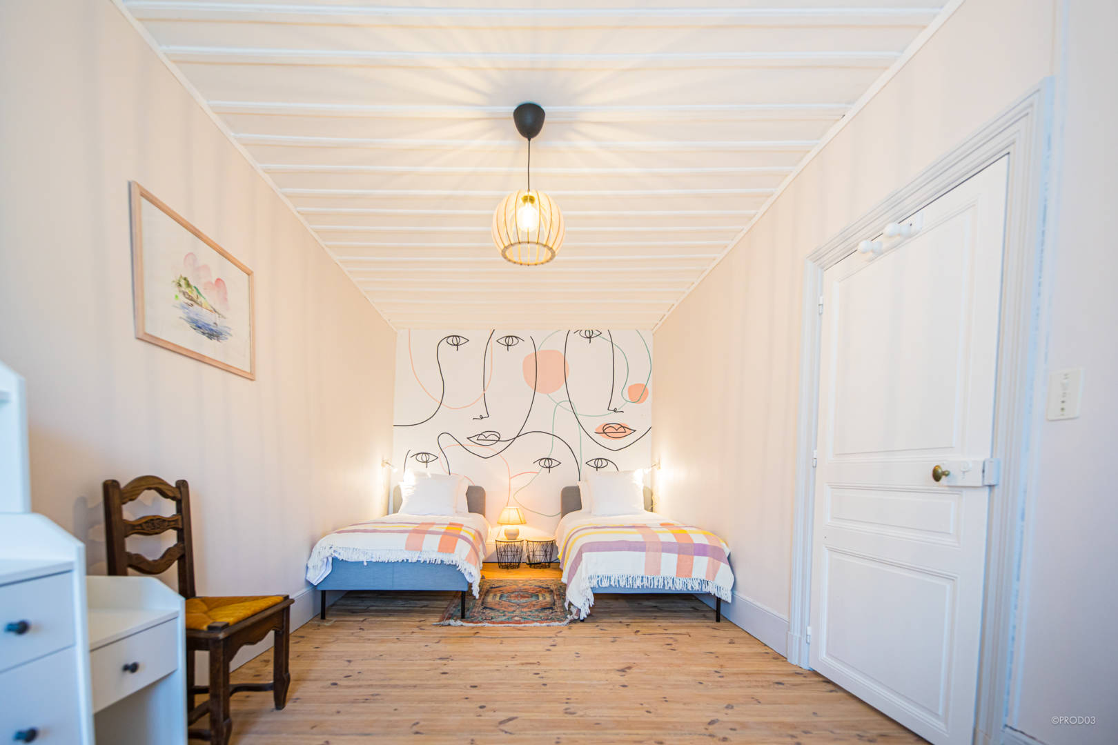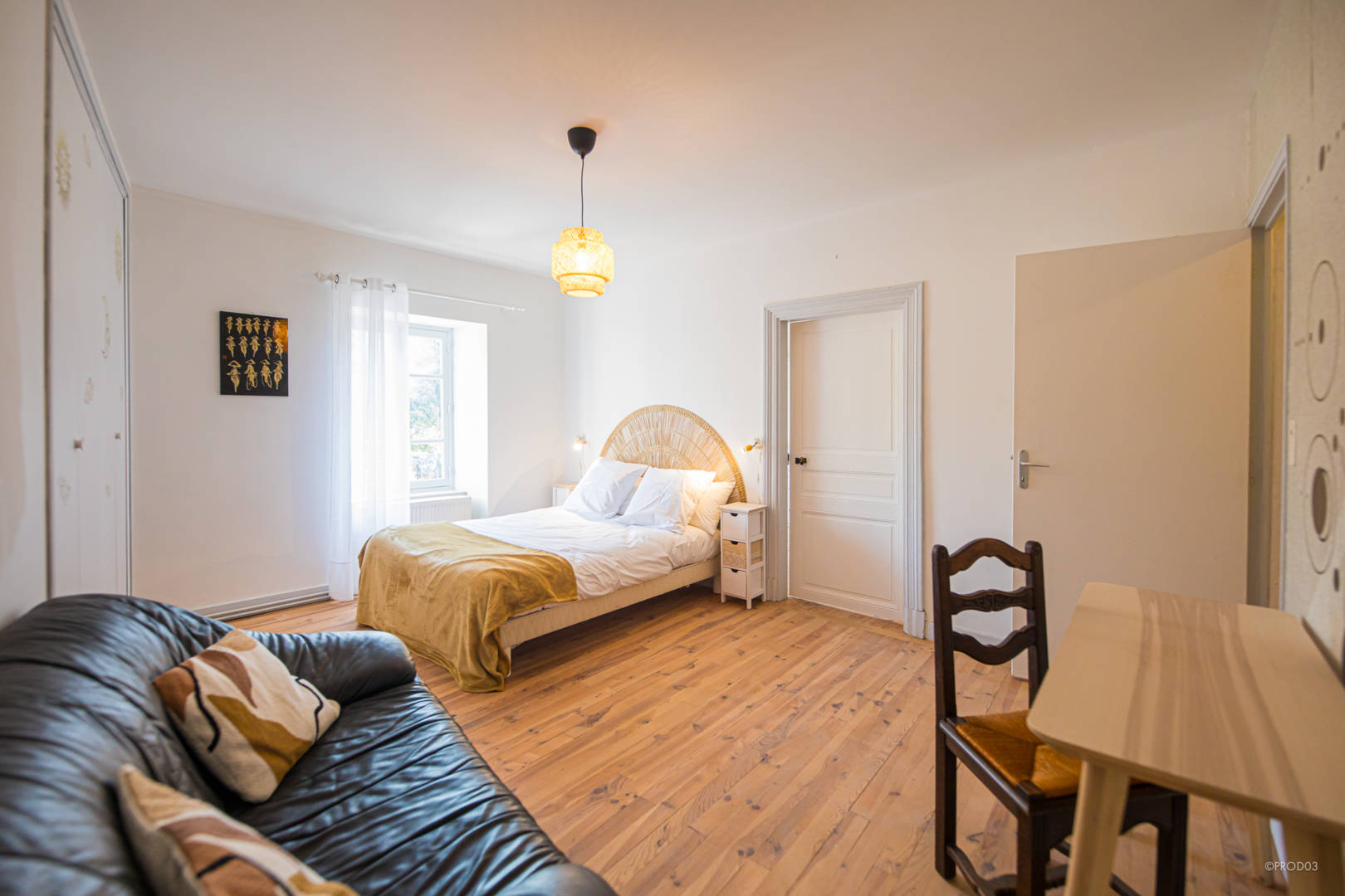 Maison ancienne rénovée donnant sur une place arborée et tranquille dans un village de 1000 habitants, à moins de 100 mètres de commerces (bar tabac restaurant, boulangerie, épicerie) et à 30 mètres de l’office de tourisme ouvert en période estivale. La maison est voisine de celle de vos hôtes.