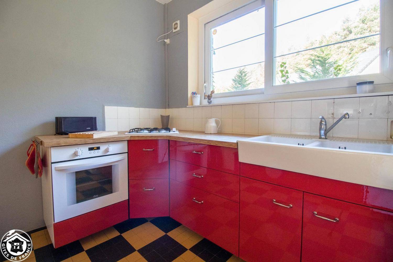 -Cuisine indépendante entièrement équipée : plaque gaz 4 feux, four, micro-ondes, réfrigérateur, lave-vaisselle, cafetière, bouilloire, grille-pain… sans oublier l’accès direct au grand appentis et au jardin arrière.