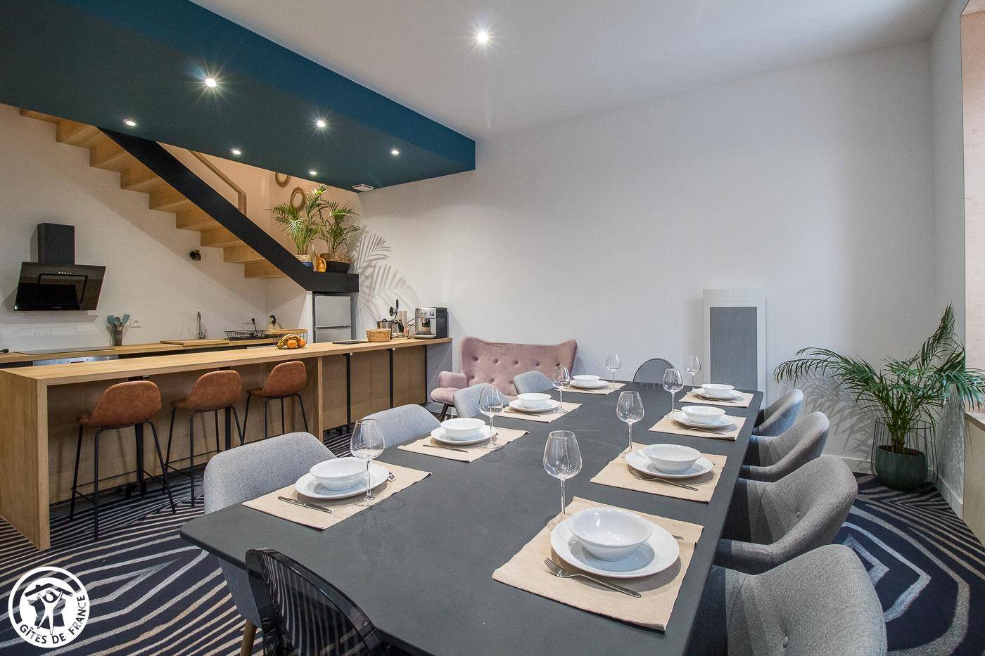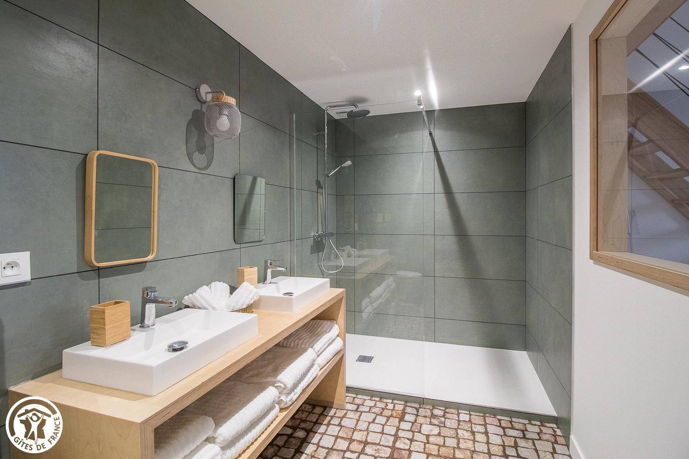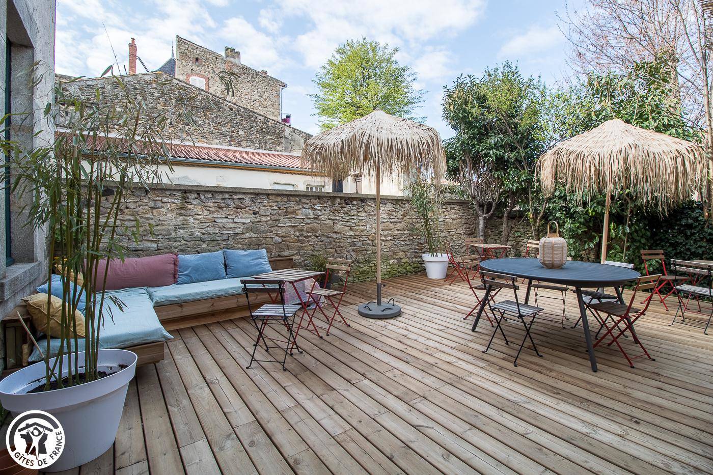 Cette maison se compose de la manière suivante : au rez-de-chaussée : pièce à vivre avec séjour et cuisine ouverte. Le séjour donne accès à la terrasse privative. WC indépendant. Au 1er étage : une chambre pour 4 personnes : 1 lit 160 et 2 lits 90 en mezzanine (la hauteur sous plafond ne permet pas de tenir debout pour un adulte), salle d’eau avec double vasque, douche à l’italienne et wc, une deuxième chambre avec 1 lit 180 et dans une « cabane en bois », 2 lits 90 (les deux espaces sont bien indépendants), salle de bain privative avec douche à l’italienne, baignoire et WC. Au 2ème étage : une chambre avec 1 lit 160 et 2 lits 90, salle d’eau/WC. Chaque chambre dispose de sa salle d’eau/WC privative. Possibilité de mettre vélos et motos dans le garage des propriétaires. Pas de parking privatif mais parking communal à proximité immédiate. Chauffage électrique inclus. Les draps et le linge de toilette sont fournis pour les courts séjours de 2 à 4 nuits. Commerces et services à Billom, sur place.