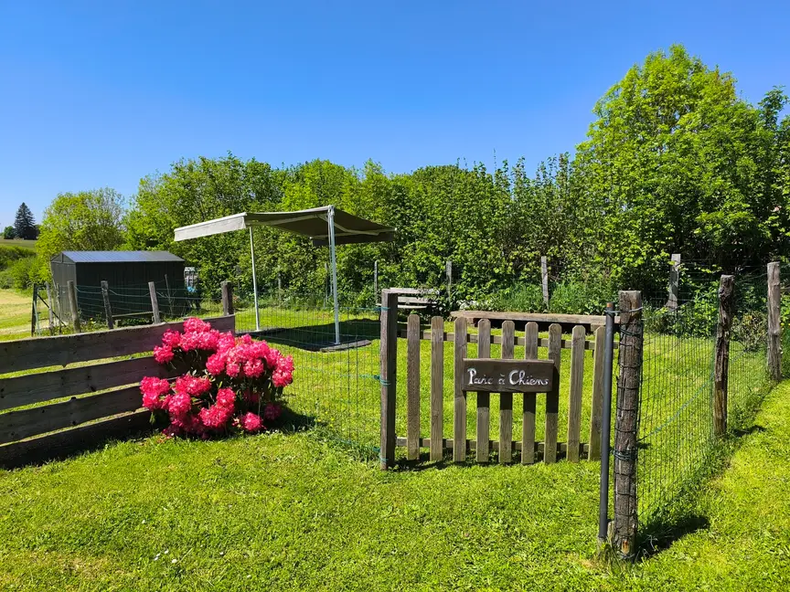 Animaux acceptés le terrain clôturé, et même un parc a chien a l’abris du soleil. Pour l’accueil des chiens dans chaque chambre les chiens on un couchage et 2 gamelles.