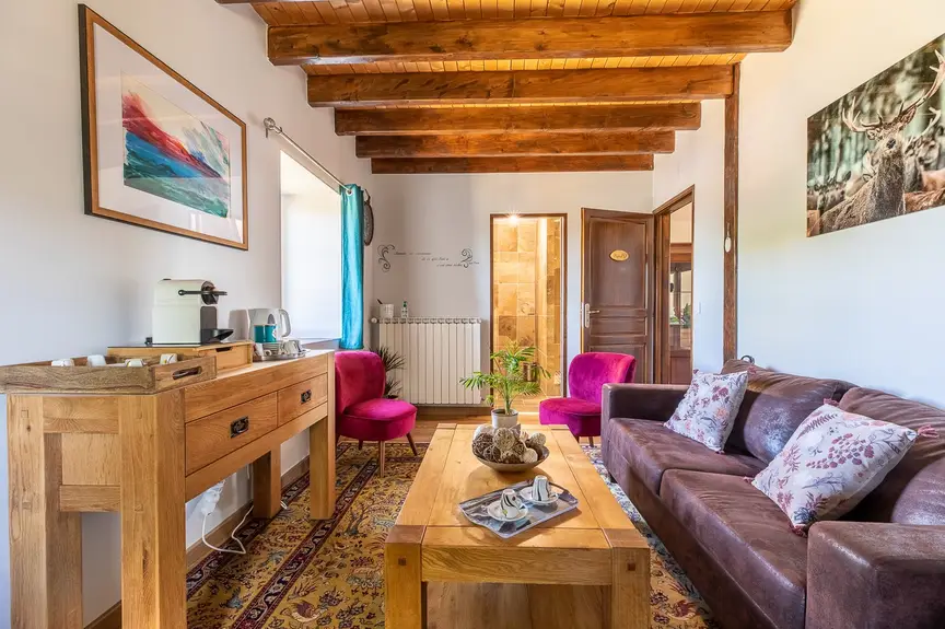 Les trois maîtres mots : confort ,détente et calme. Tout a été pensé pour des séjours douillets et savoureux au cœur d’une Auvergne authentique. Les chambres se trouvent au premier étage d’une bâtisse en pierre de pays. Vous aurez le plaisir de choisir entre quatre chambres : Uriel, Cupidon, Michaël(…)
