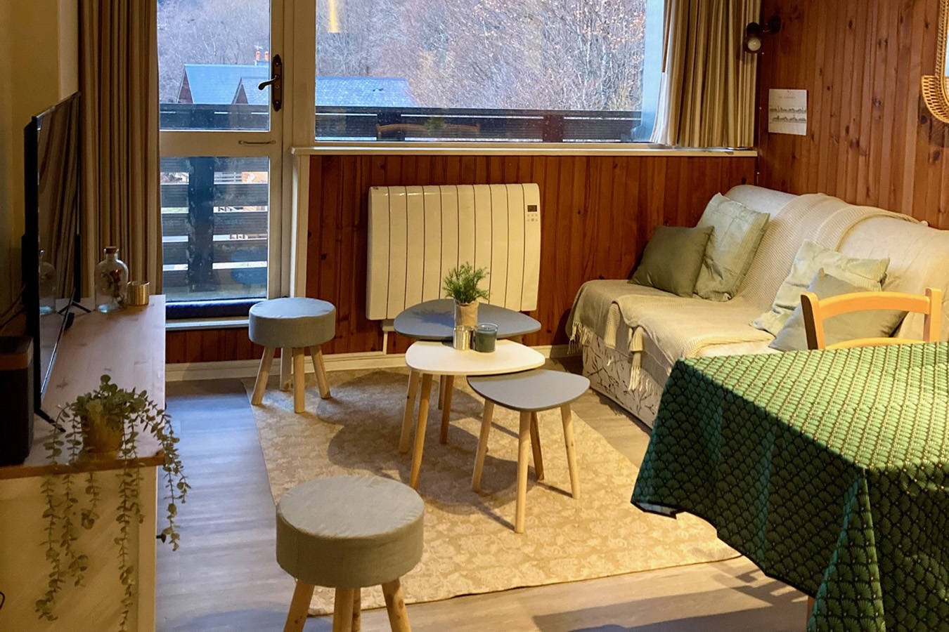 – d’un séjour, avec son accès sur le balcon, avec un table (avec rallonges si besoin), un canapé convertible, d’une télévision, de jeux et livres pour petits et grands.