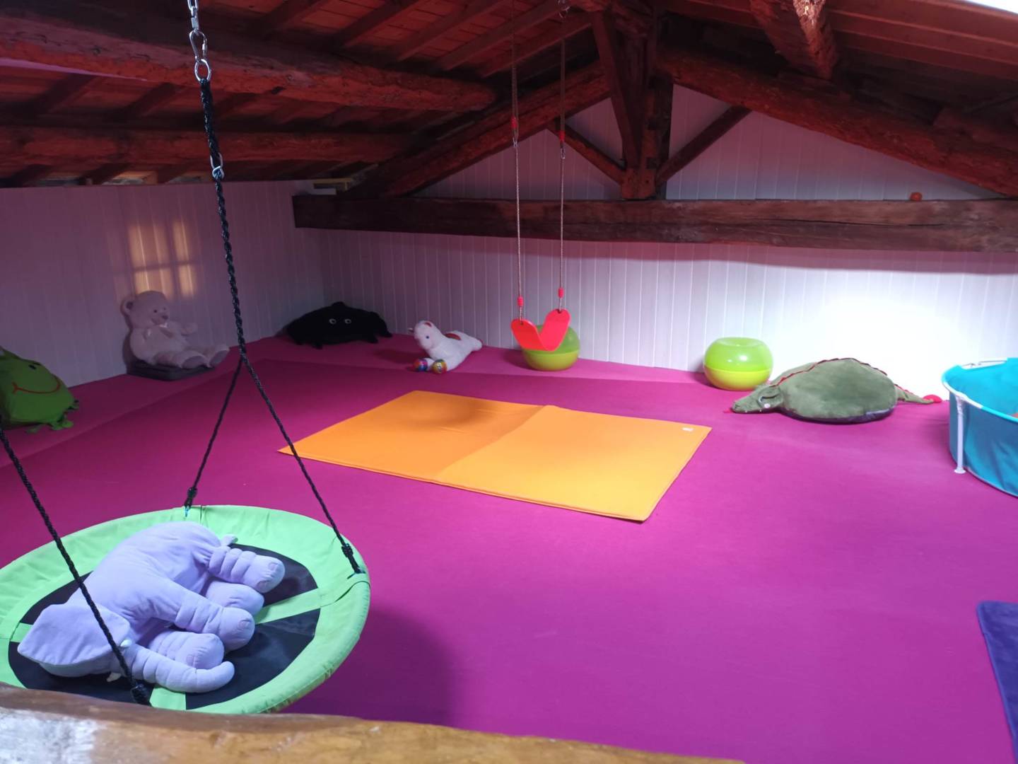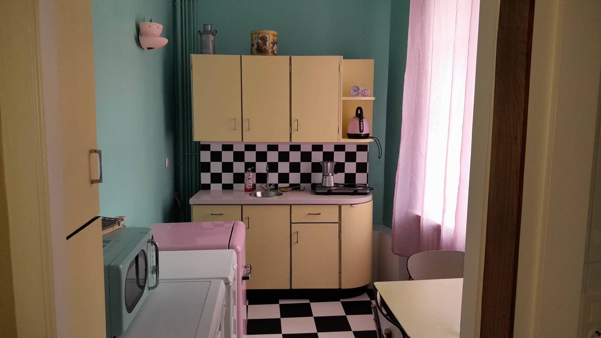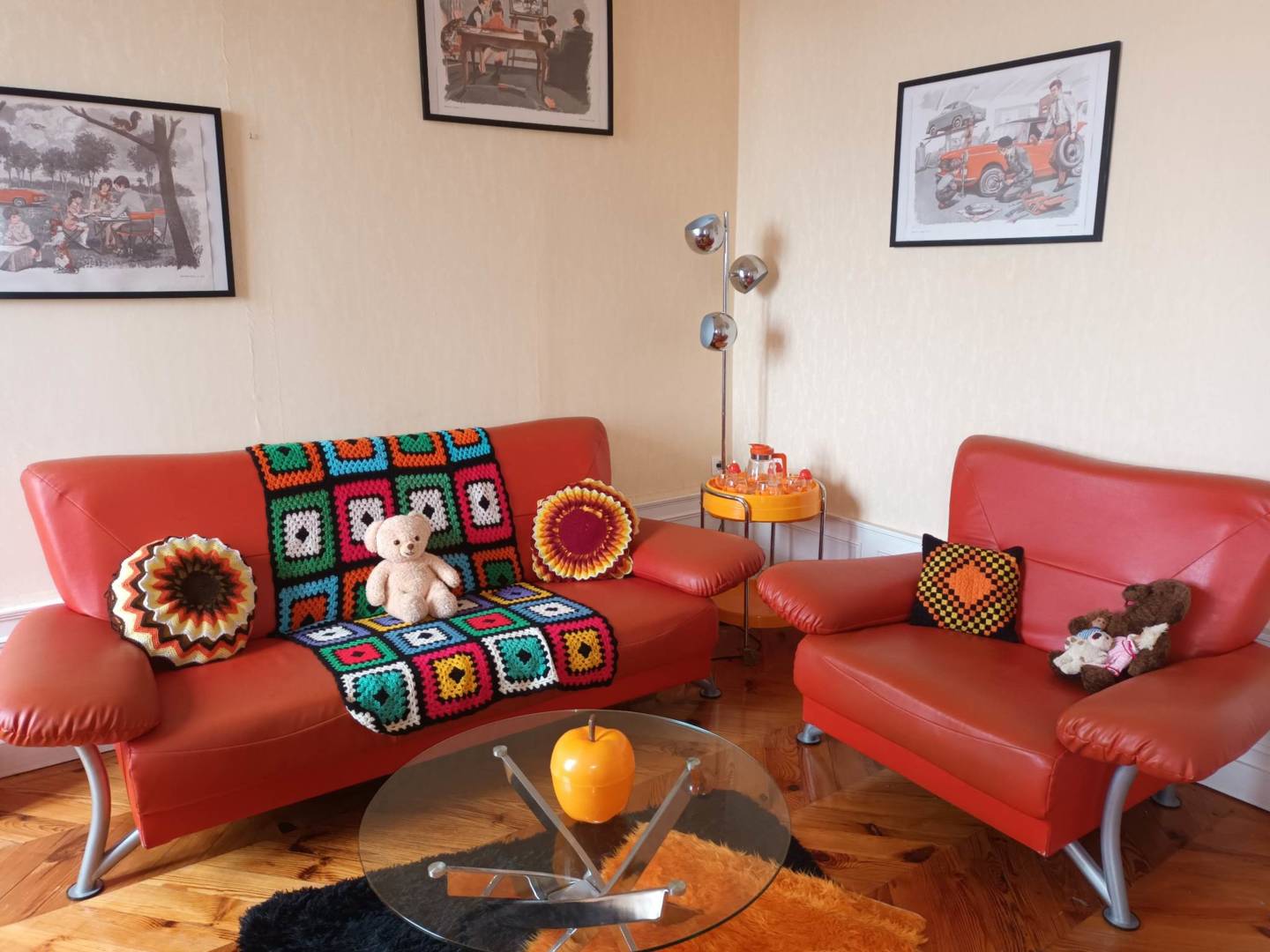 Grand appartement vintage, cuisine équipée, salle de bain avec baignoire, une chambre adulte années 80, une chambre enfants 4 couchages années 80, une grande salle de jeux avec balançoires, piscine à balles et nombreux jeux. Redécouvrez les objets d’hier, platine vinyle, radio cassette, dictée magique, rubik’s cube, téléphone à cadran….