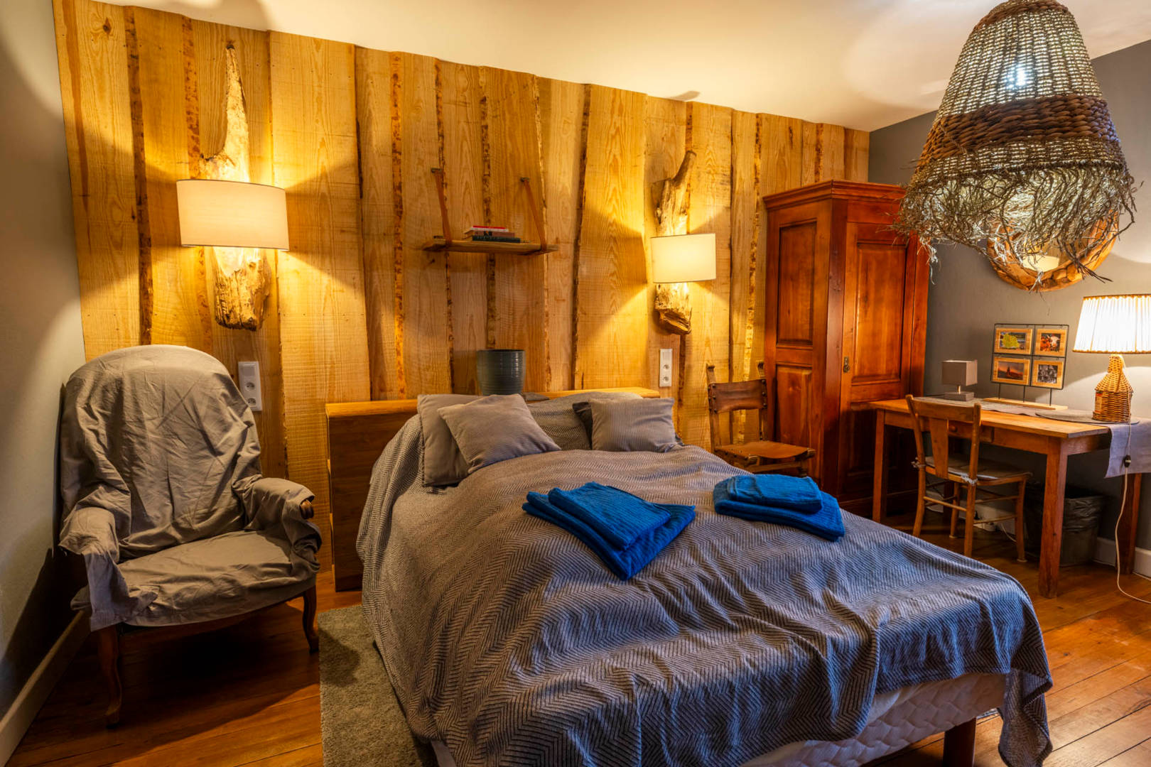 – Chambre grise : avec un lit double et TV,