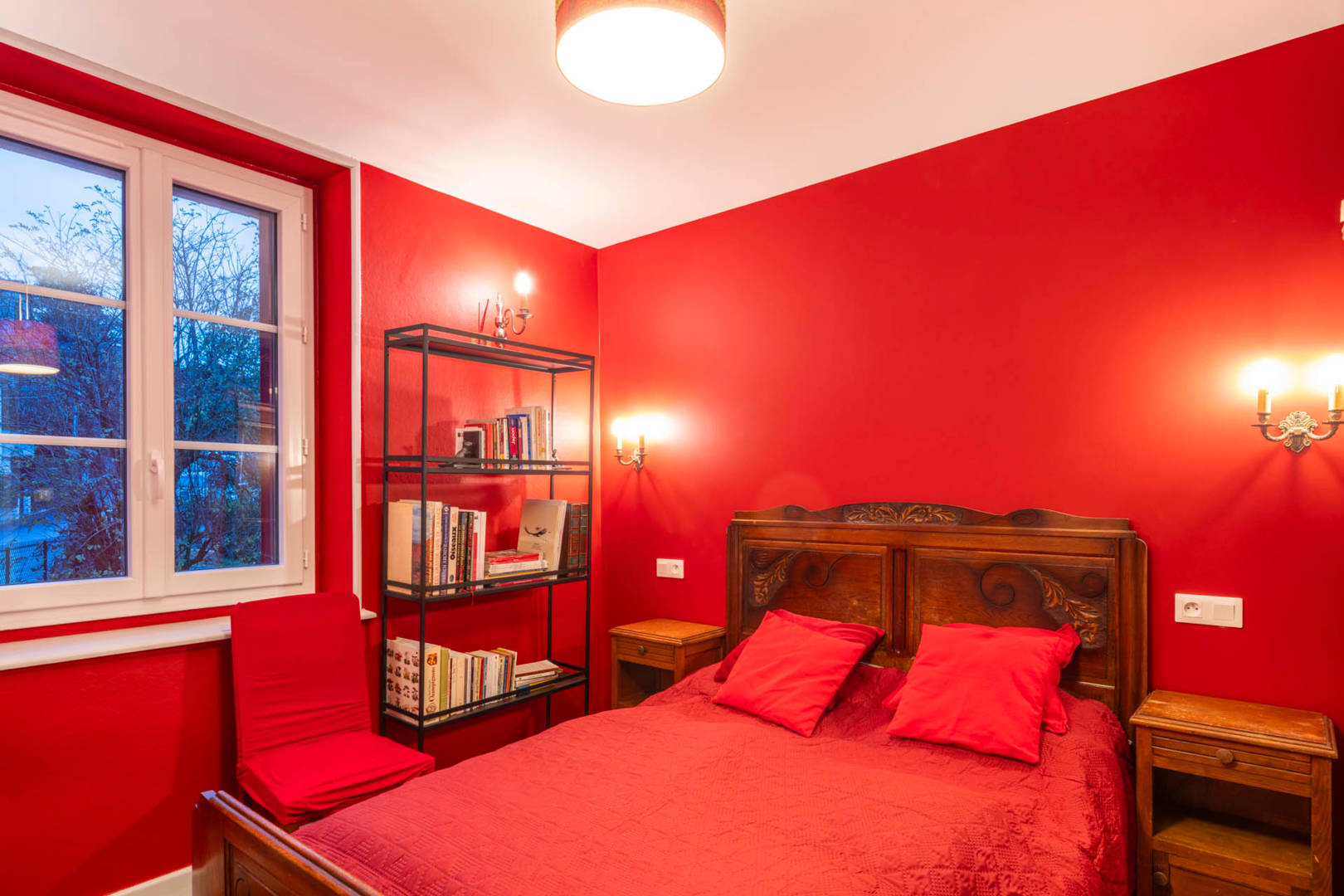 – Chambre rouge : avec un lit double,
