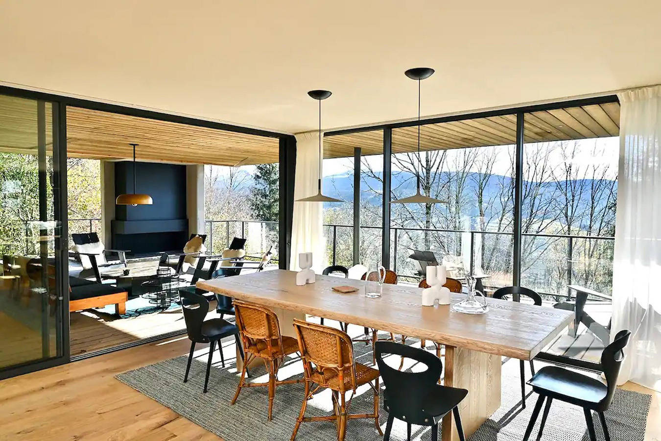 Où que vous soyez dans le salon, le coin repas ou côté cuisine, les baies vitrées vous permettent d’observer la vue sur la vallée du Sancy. Situé à 8 km de la station thermale et de sports d’hiver du Mont-Dore avec de nombreuses activités proposées, à 4 km de la station thermale de La Bourboule avec son magnifique parc, piscine couverte, casino … 15 min en voiture des domaines de ski alpin ou nordique !