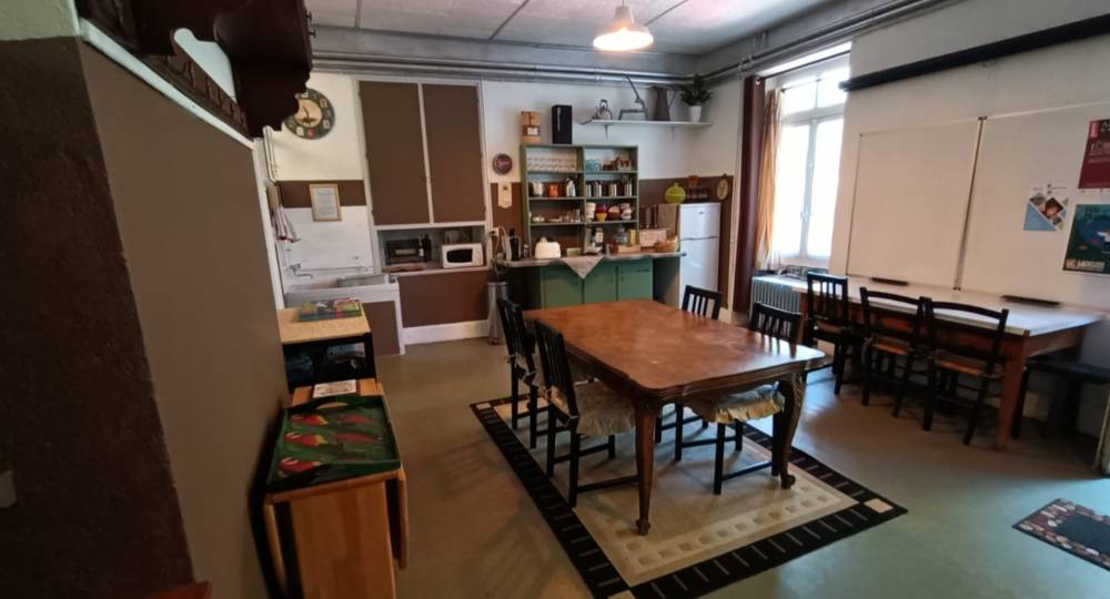 – Le rez-de-chaussée, en partie privatif, met à votre disposition l’ancien préau intérieur accédant à une grande salle de classe aménagée en coin(…)
