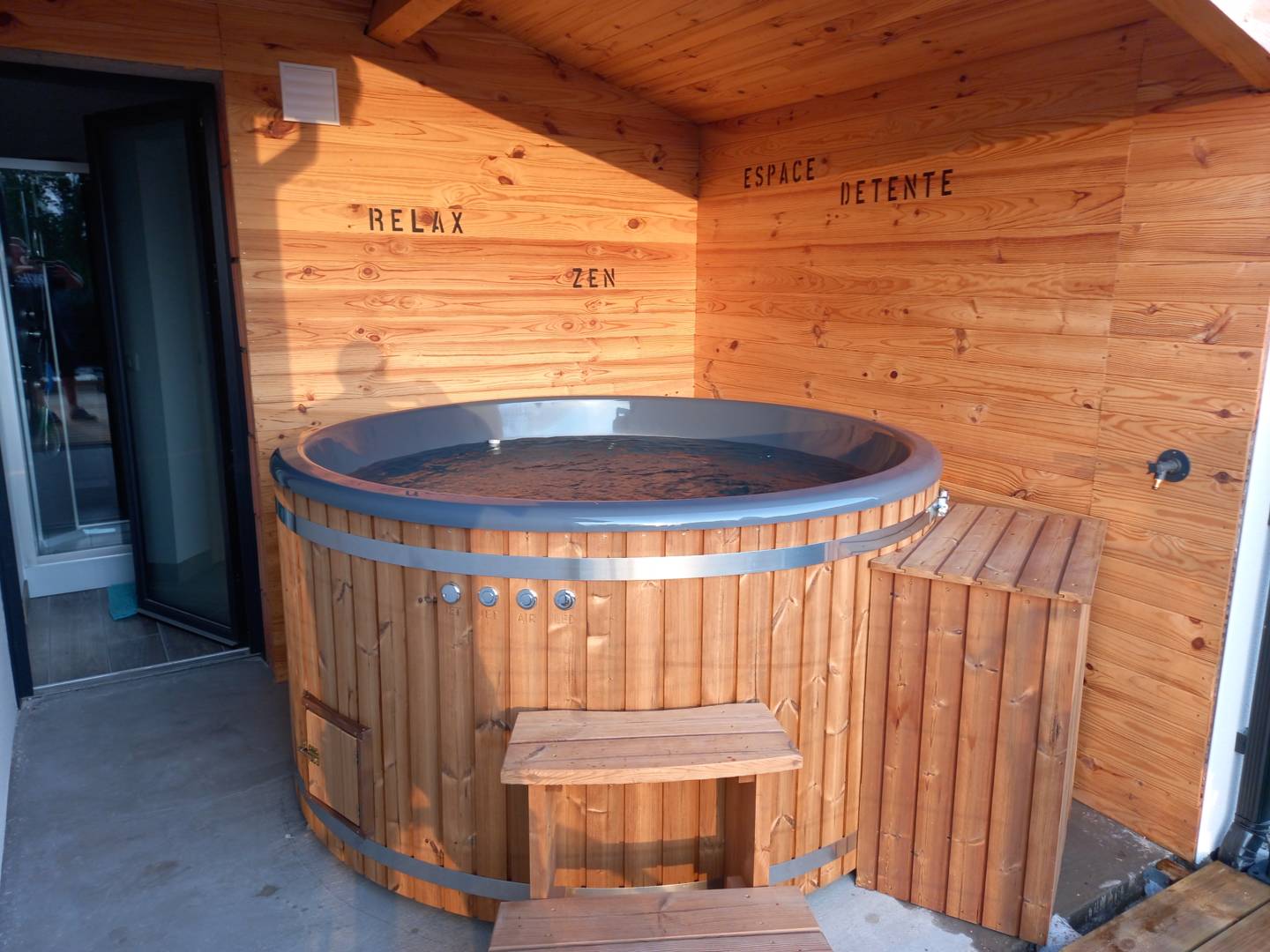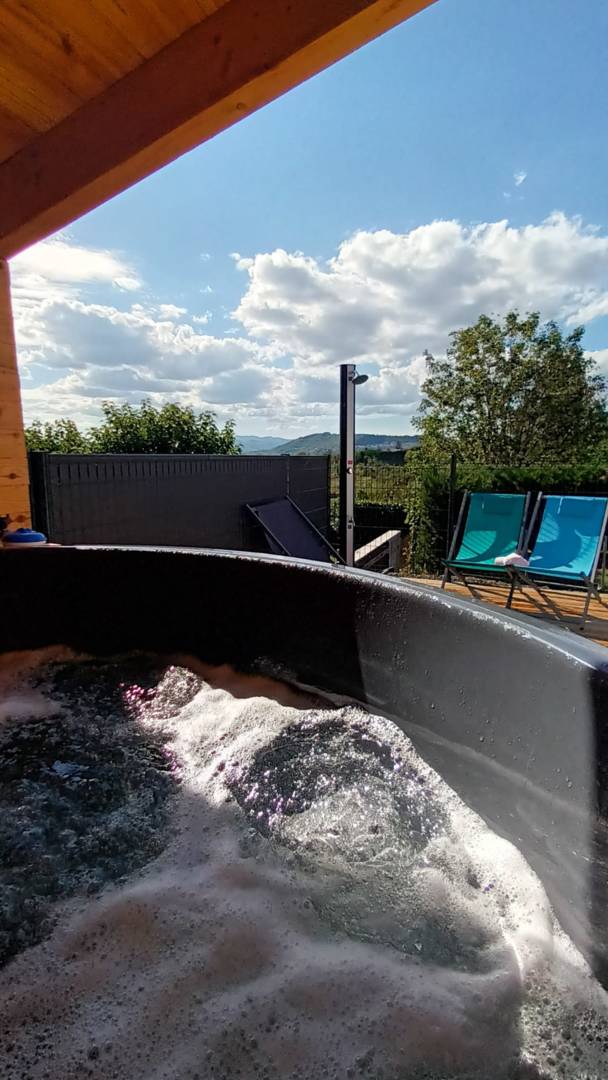 Ce logement paisible offre un séjour détente pour toute la famille avec son bain nordique extérieur sous abri avec vue sur les montagnes du Sancy et du Mont-Dore. Massage jet d’eau et remous avec une température comprise entre 37 et 40°.