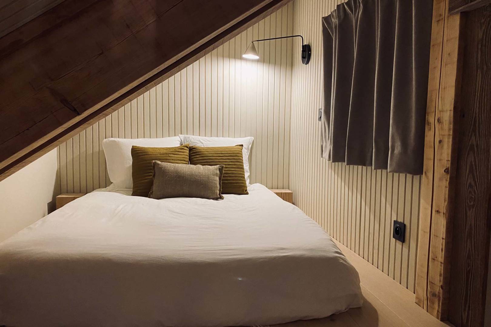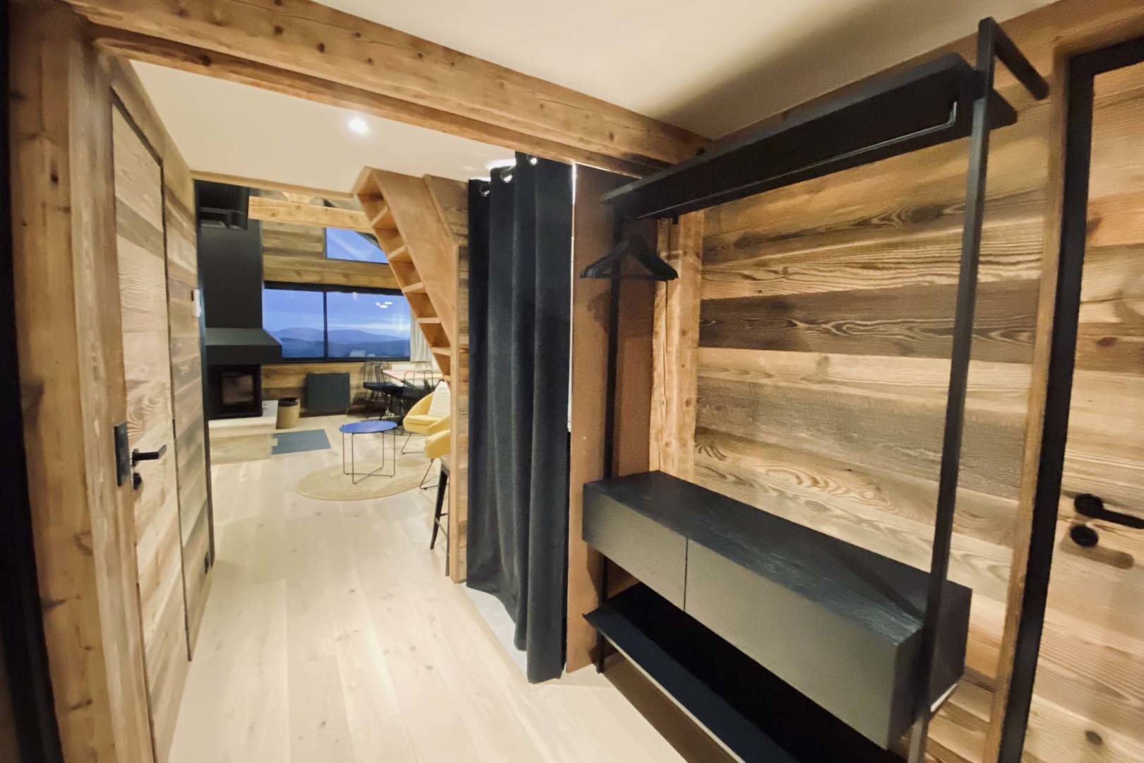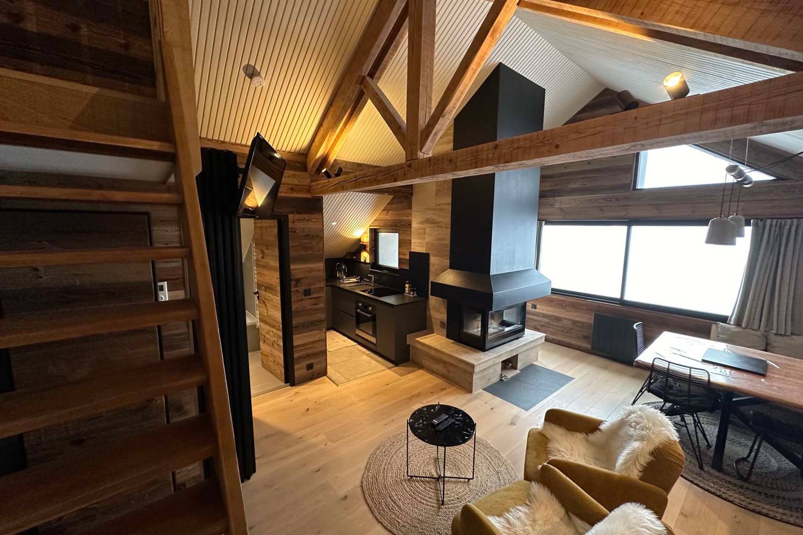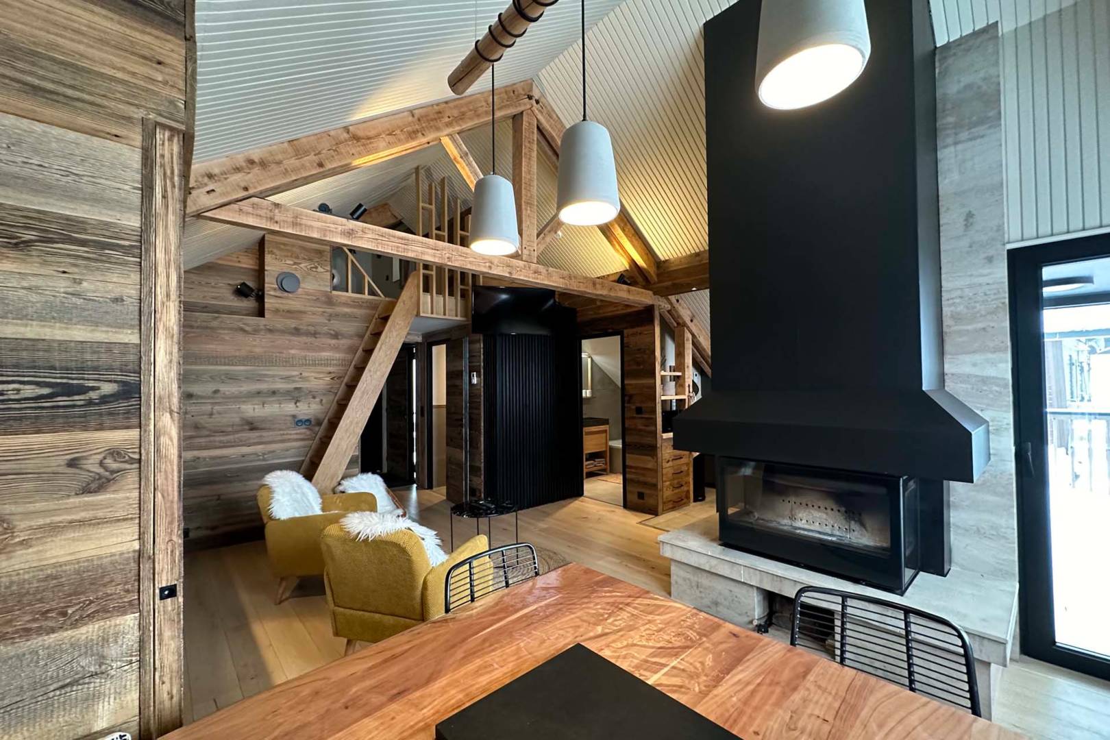 Concernant le logement 6/8 personnes (à l’étage), il se compose d’une entrée avec rangements, et sèche chaussures de ski, d’une cuisine équipée (lave vaisselle, plaque vitro, four, cafetière Nespresso, raclette, fondue…) ouverte sur un séjour avec cheminée à bois (bûches à disposition), 2 chambres avec lits doubles (140X190), une chambre(…)