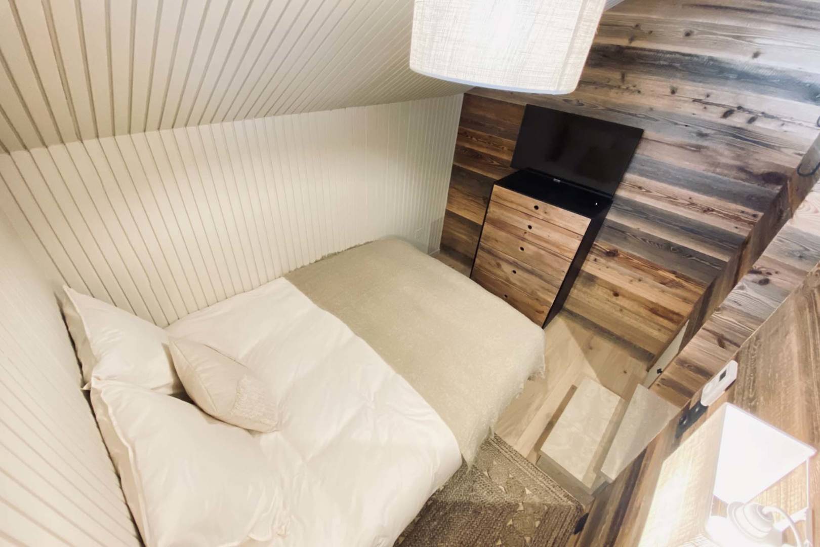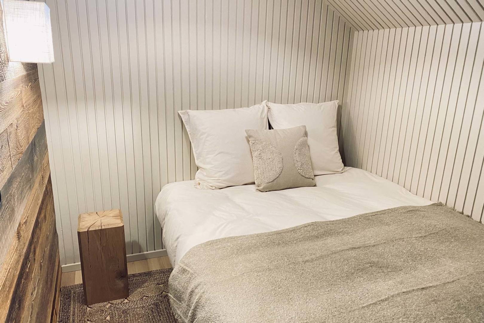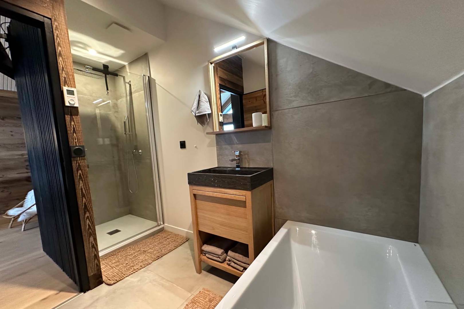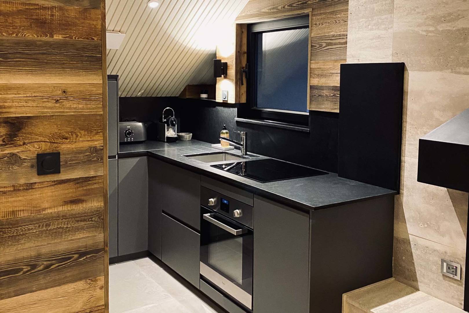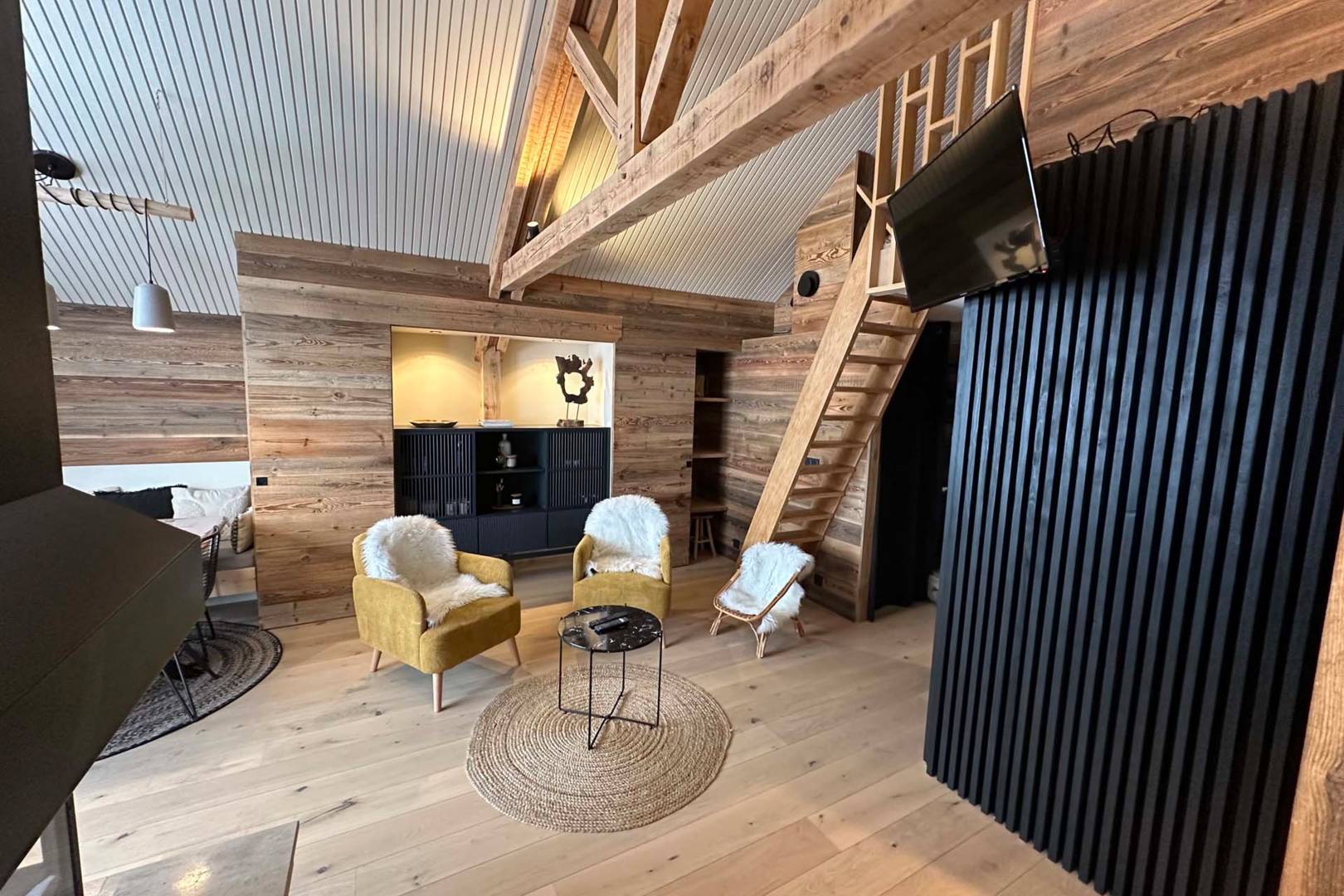 Concernant le logement 6/8 personnes (à l’étage), il se compose d’une entrée avec rangements, et sèche chaussures de ski, d’une cuisine équipée (lave vaisselle, plaque vitro, four, cafetière Nespresso, raclette, fondue…) ouverte sur un séjour avec cheminée à bois (bûches à disposition), 2 chambres avec lits doubles (140X190), une chambre(…)