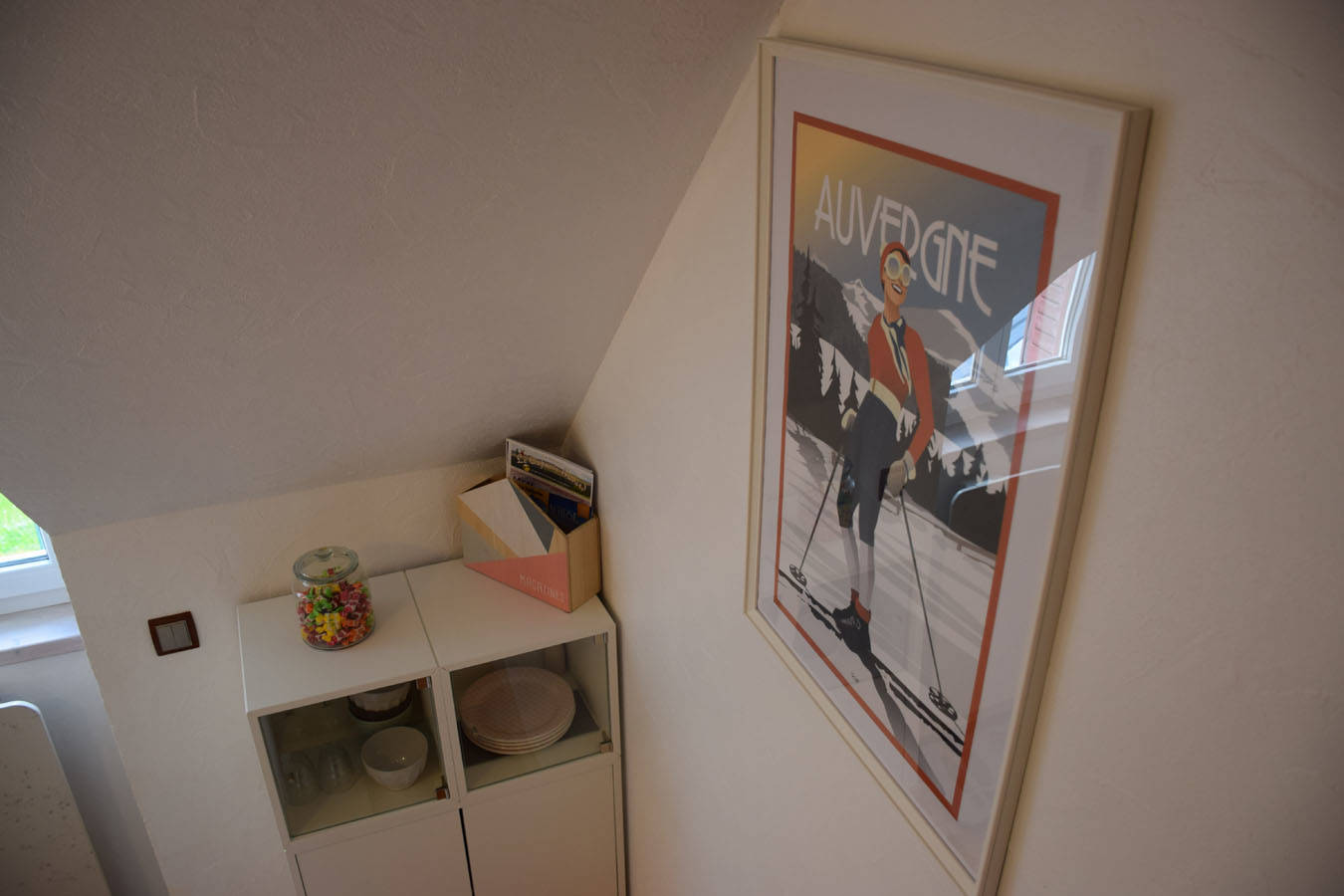 Situé au 2eme et dernier étage d’une maison typique du Sancy, cet appartement classé deux étoiles de 17m Carrez (35 m² au sol) comprend un séjour/cuisine, et à l’étage, sous les toits, une salle de bain et une chambre traversante mansardée offrant de belles vues sur le village et les montagnes.