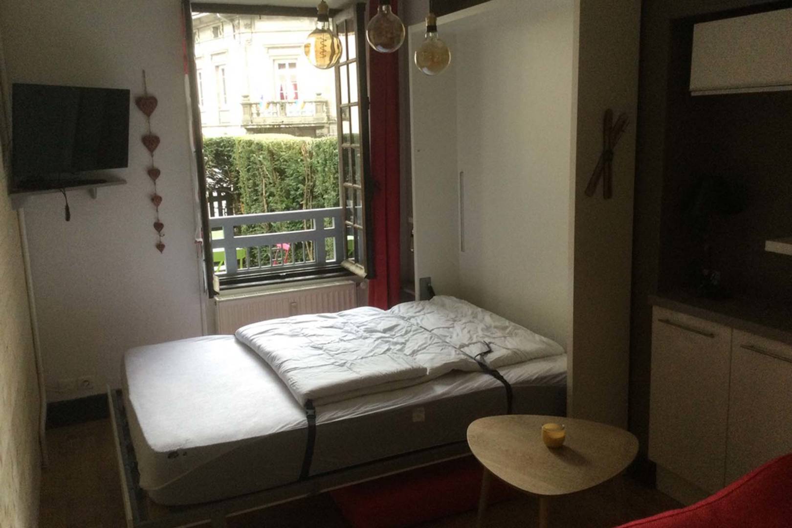 Situé à 130 mètres des thermes et des commerces. Accès sécurisé par digicode. La cuisine fermée avec son coin repas est équipée à neuf d’un lave-linge, d’un réfrigérateur avec compartiment congélateur et d’un combiné four/micro-ondes. Dans la pièce à vivre, on trouvera un canapé-lit BZ et un lit de 140 rabattable nouvelle génération (ouverture /fermeture facile avec canapé intégré) pour un confort de couchage optimal. La salle de bain a été refaite à neuf avec une douche à l’italienne. WC séparé. Capacité d’accueil pour 2 personnes. Navette gratuite à 150 mètres pour accès aux pistes de ski (circule les week-ends et vacances scolaires en hiver).