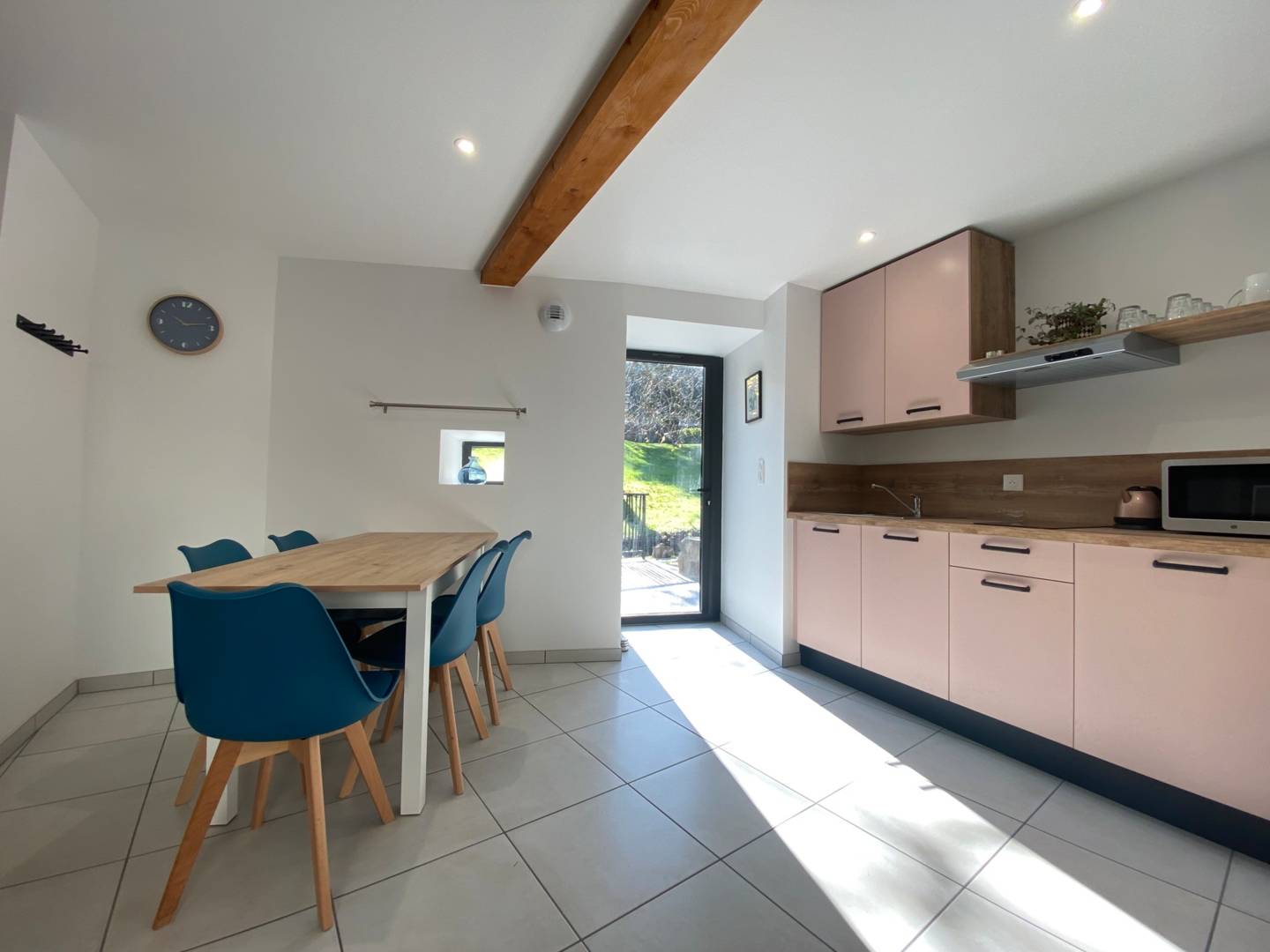 C’est le gîte « familial », Il peut accueillir 4 à 5 personnes. Il est installé dans l’ancien moulin, au bord du cours d’eau. En duplex, plutôt « cocooning », Il comprend en rez de jardin une pièce de vie avec une cuisine ouverte équipée notamment d’un lave-vaisselle, un salon TV équipé d’un canapé-lit de « qualité », une salle d’eau, un wc indépendant et bien-sur une terrasse privative au bord du ruisseau. Au premier étage, nous trouvons deux belles chambres avec rangements, équipées soit avec un lit double soit avec deux lits simples et une salle de bain – wc. Idéale pour une famille et / ou pour voyager entre ami(e)s. Ce gîte peut accueillir 1 à 6 personnes.