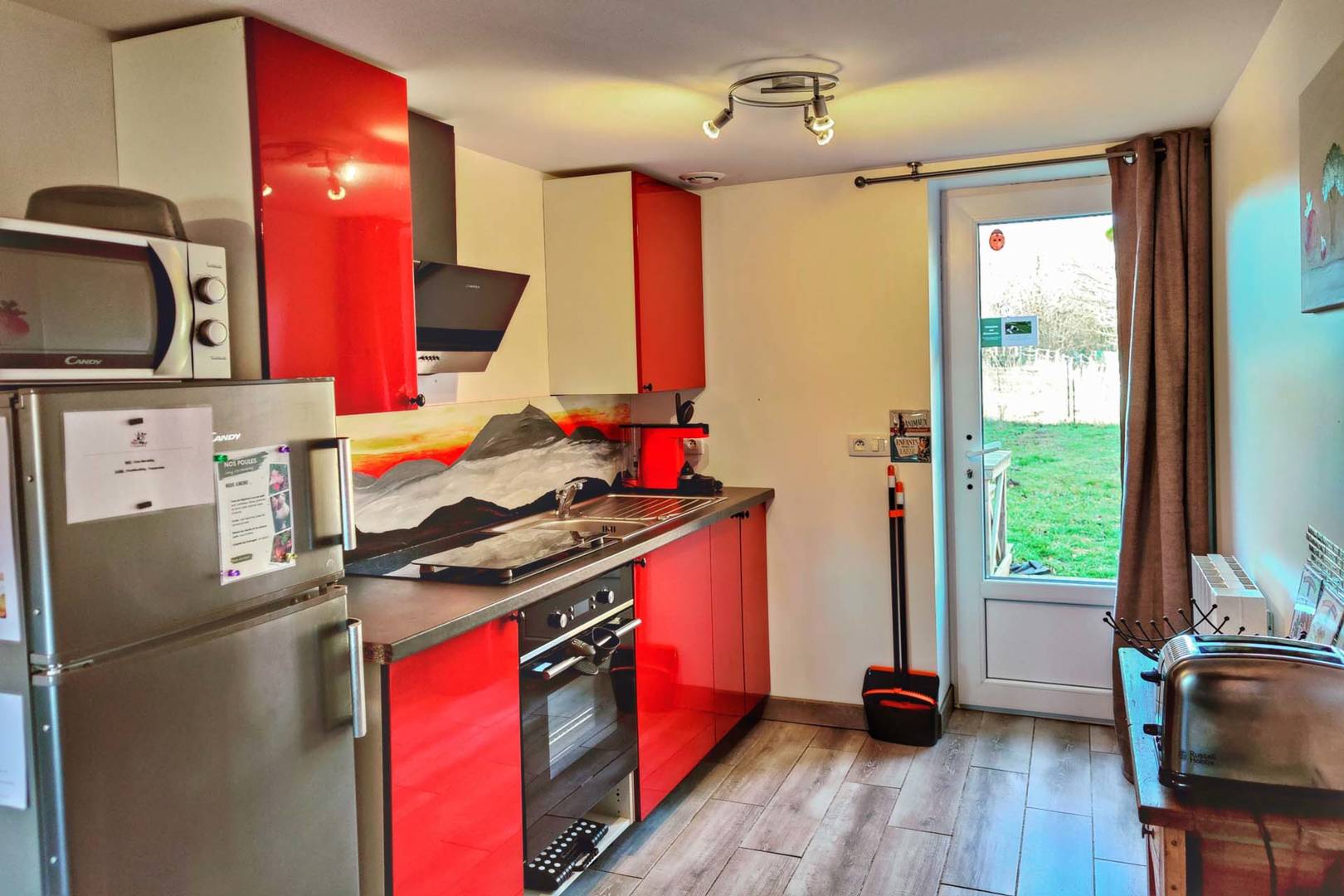 La maison est située dans un hameau très calme, sans route passante, au sein d’une petite ferme encore en activité. Elle est entourée de pâturages, de chemins de randonnée et de vastes paysages typiquement auvergnats. Dès le pas de la porte, vous pourrez partir en balade avec vos chiens sans avoir à prendre la voiture. Le jardin privé, attenant au gîte, est entièrement clos avec une clôture haute (plus de 1m50), ce qui permet aux chiens de se défouler en toute sécurité.