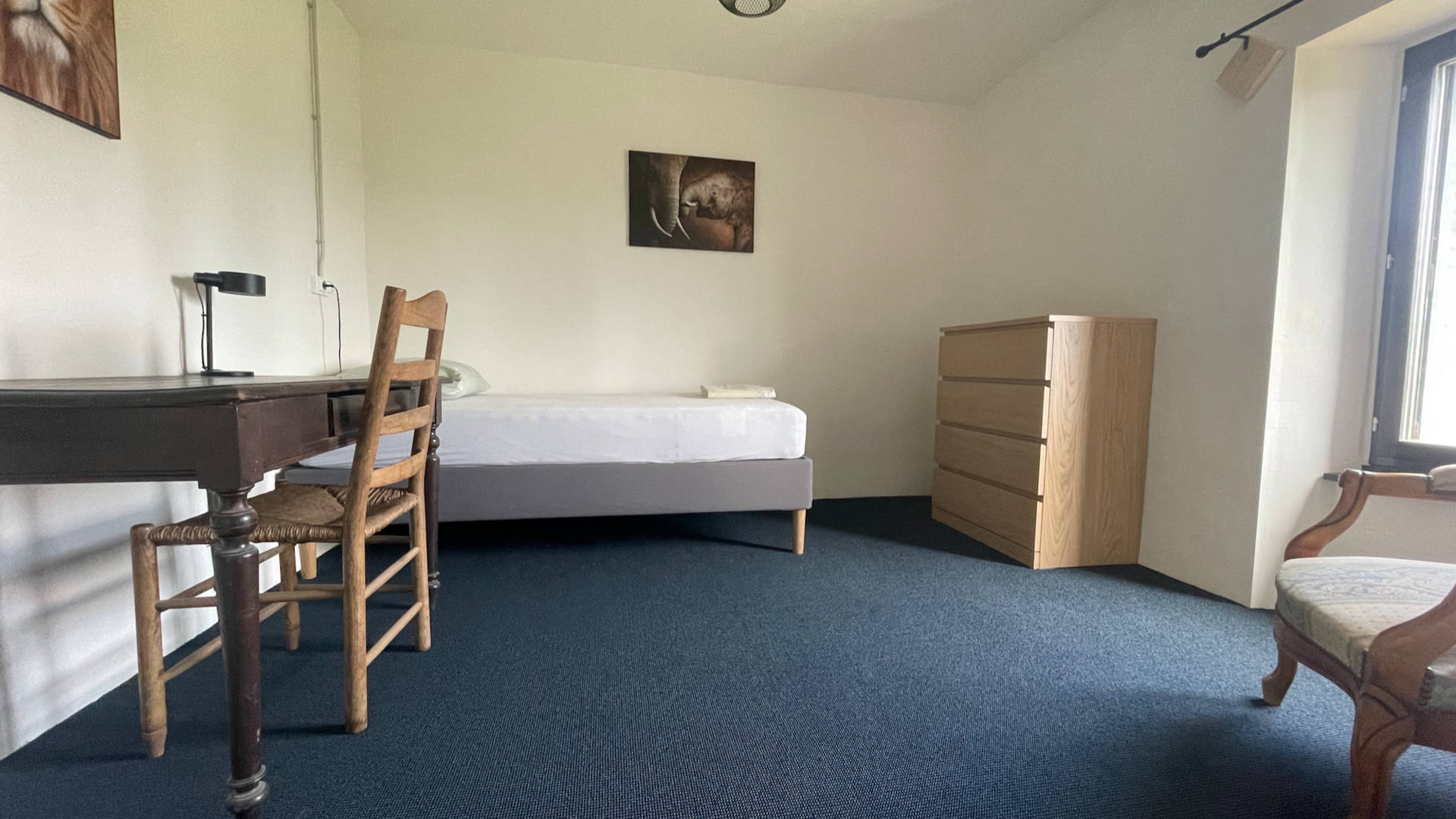 Les chambres (deux chambres simples et deux chambres doubles) sont situées au premier étage de la maison. Elles partagent une douche et des toilettes. Les draps et les serviettes sont fournis. Vous pourrez profiter des terrasses devant et derrière la maison, ainsi que de la salle de loisirs avec cuisine(…)