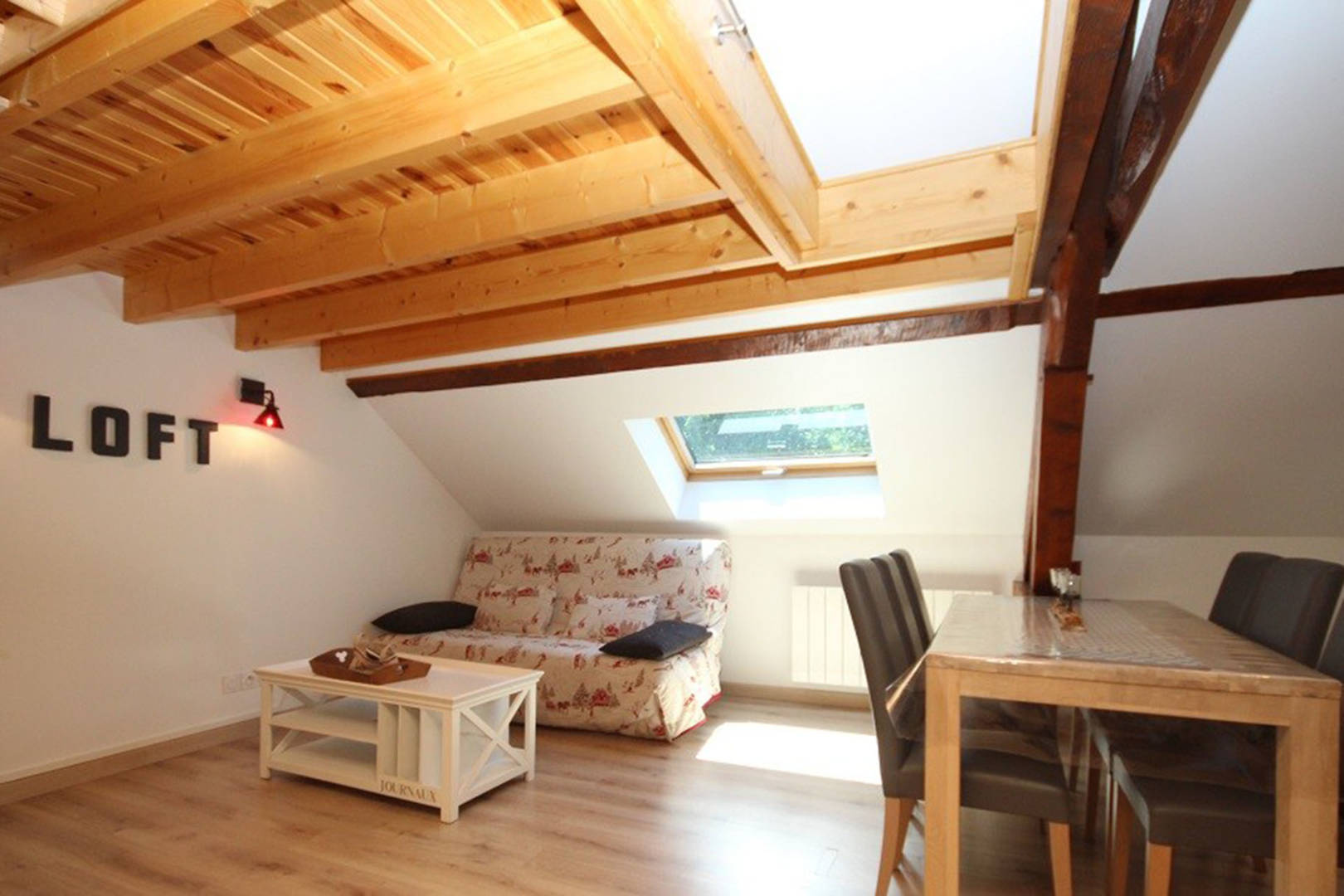 La pièce de vie avec canapé BZ de deux couchages en 140 cm ouvre sur une cuisine US entièrement équipée. La chambre bénéficie d’un couchage(…)