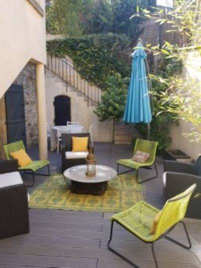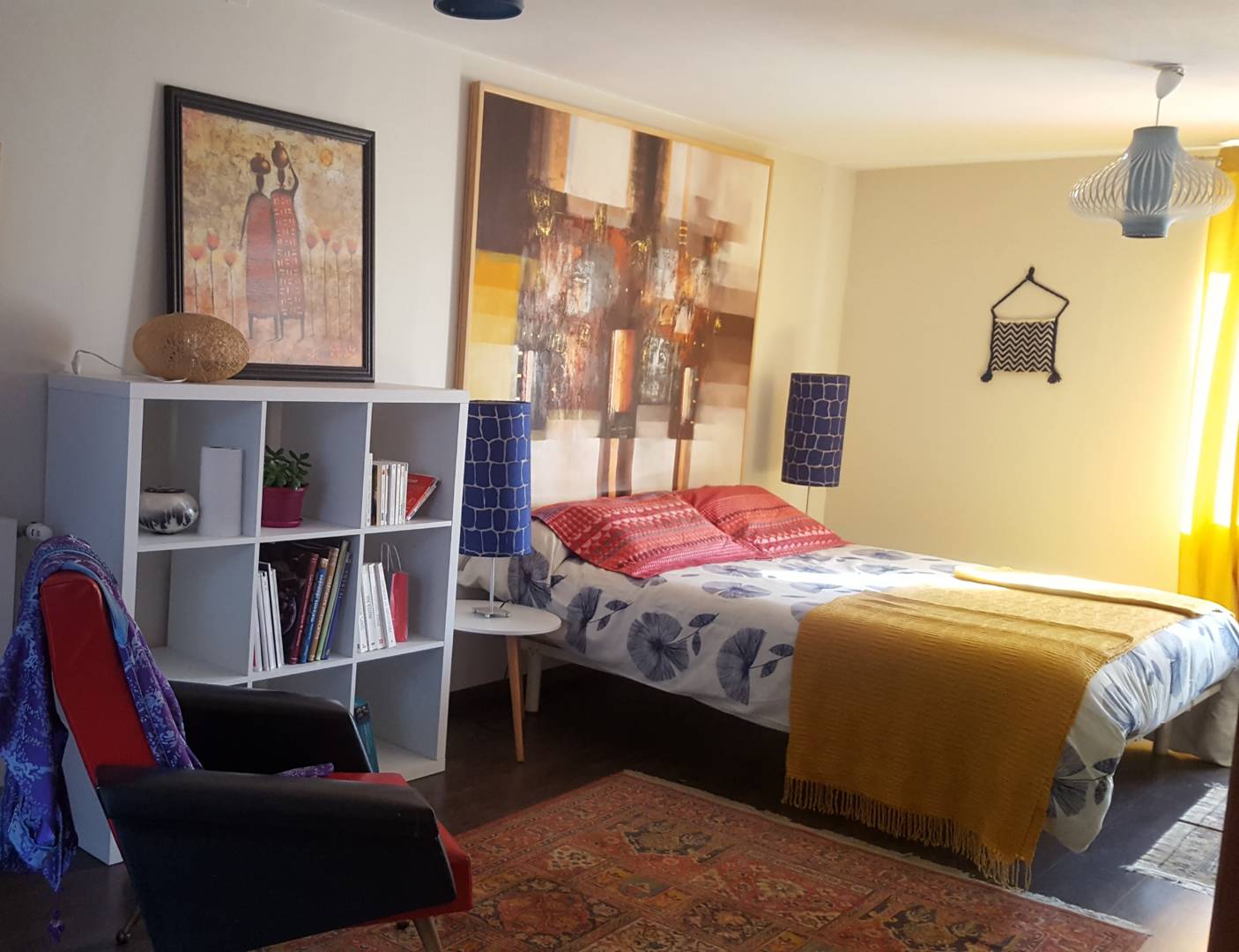 – La chambre Soleada : une chambre familiale joliment décorée (lit 160*200 et deux lits 90*200) salle de bain/douche et WC privatifs, TV à écran plat, wifi, Chromecast, donnant sur un patio.