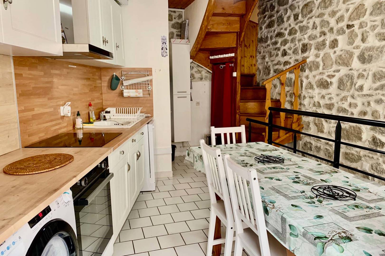 Charmante maison située en cœur de ville, vous entrez par l’avenue des Belges. La pièce principale vous ouvre ses portes sur les jolies pierres apparentes et une belle cuisine aménagée d’un toilette. Le 1er étage dessert une chambre spacieuse et ses rangements ainsi qu’une salle de douche. La suite au 2ème étage, aménagé sous comble, la chambre des enfants, un lit double, un lit simple pour profiter de cet espace en toute tranquillité. Le plus: la cave aménagée en buanderie, accessible par extérieur de la maison, en descendant l’escalier public sur la droite. Cette buanderie vous offrira de l’espace pour la machine à laver, le sèche linge, un évier et de quoi étendre votre linge et garer vos vélos. Pour finir, lors vos soirées en été, une petite terrasse en contre bas de l’escalier public permettant d’accéder à la buanderie saura vous apporter du plaisir lors de vos apéritifs et autres moments de détente. Il vous suffira de l’aménager à votre grés en disposant les tables et chaises à votre convenance.
