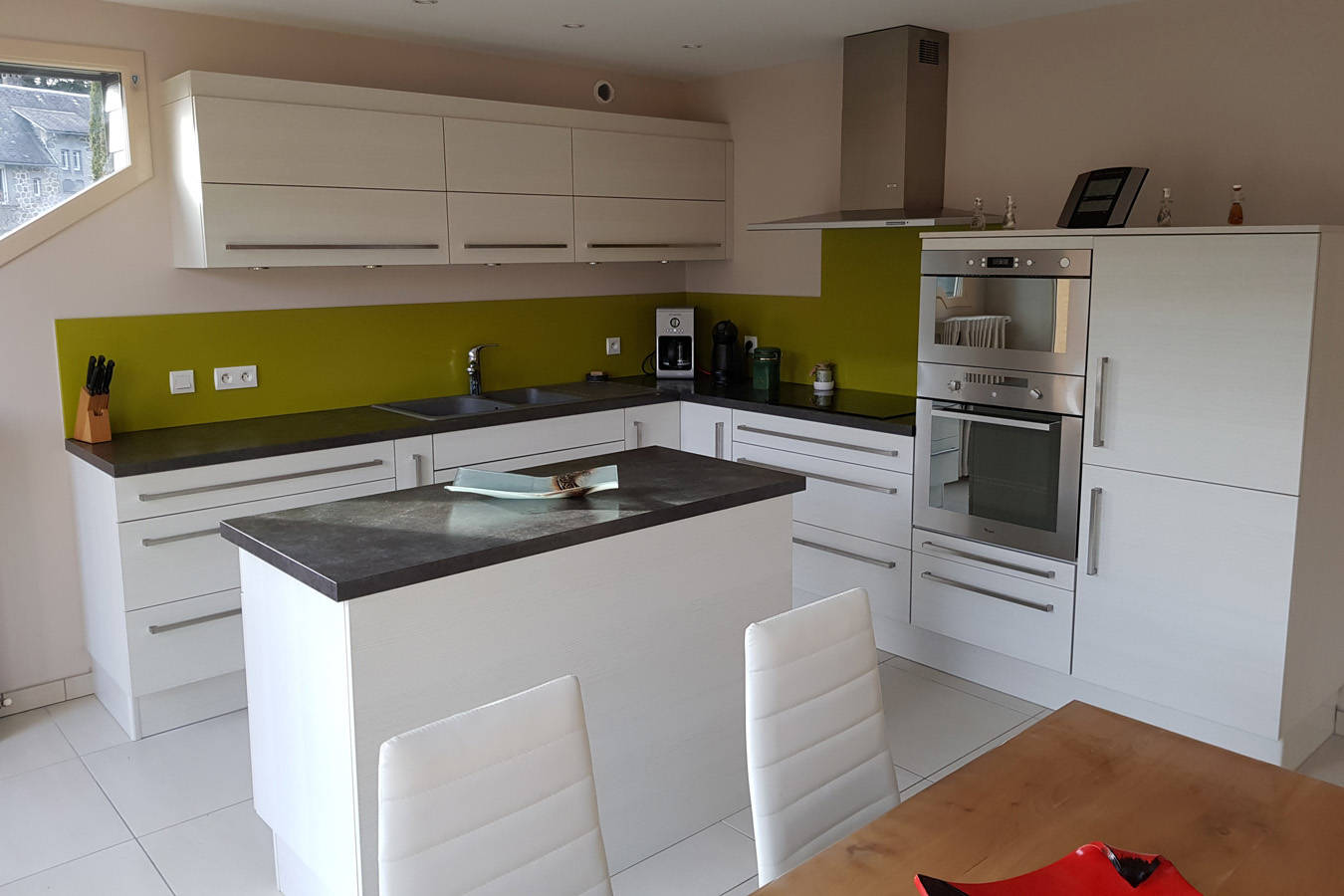 Entièrement rénovée, elle se compose : – d’une cuisine moderne totalement équipée ouverte sur un espace salon confortable avec TV écran plat DVD, d’un poêle à bois pour le plaisir de la flamme (la maison dispose du chauffage central). -(…)