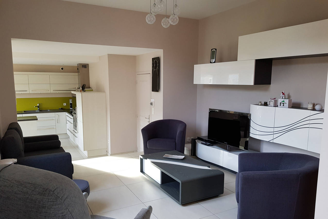 Entièrement rénovée, elle se compose : – d’une cuisine moderne totalement équipée ouverte sur un espace salon confortable avec TV écran plat DVD, d’un poêle à bois pour le plaisir de la flamme (la maison dispose du chauffage central). – 3 chambres avec dressings privatifs dont 2 avec TV, deux salles d’eau avec sèche serviette. – 1 garage indépendant avec porte motorisée. – 1 appentis pour vélo. – 1 terrasse avec store électrique et salon de jardin.