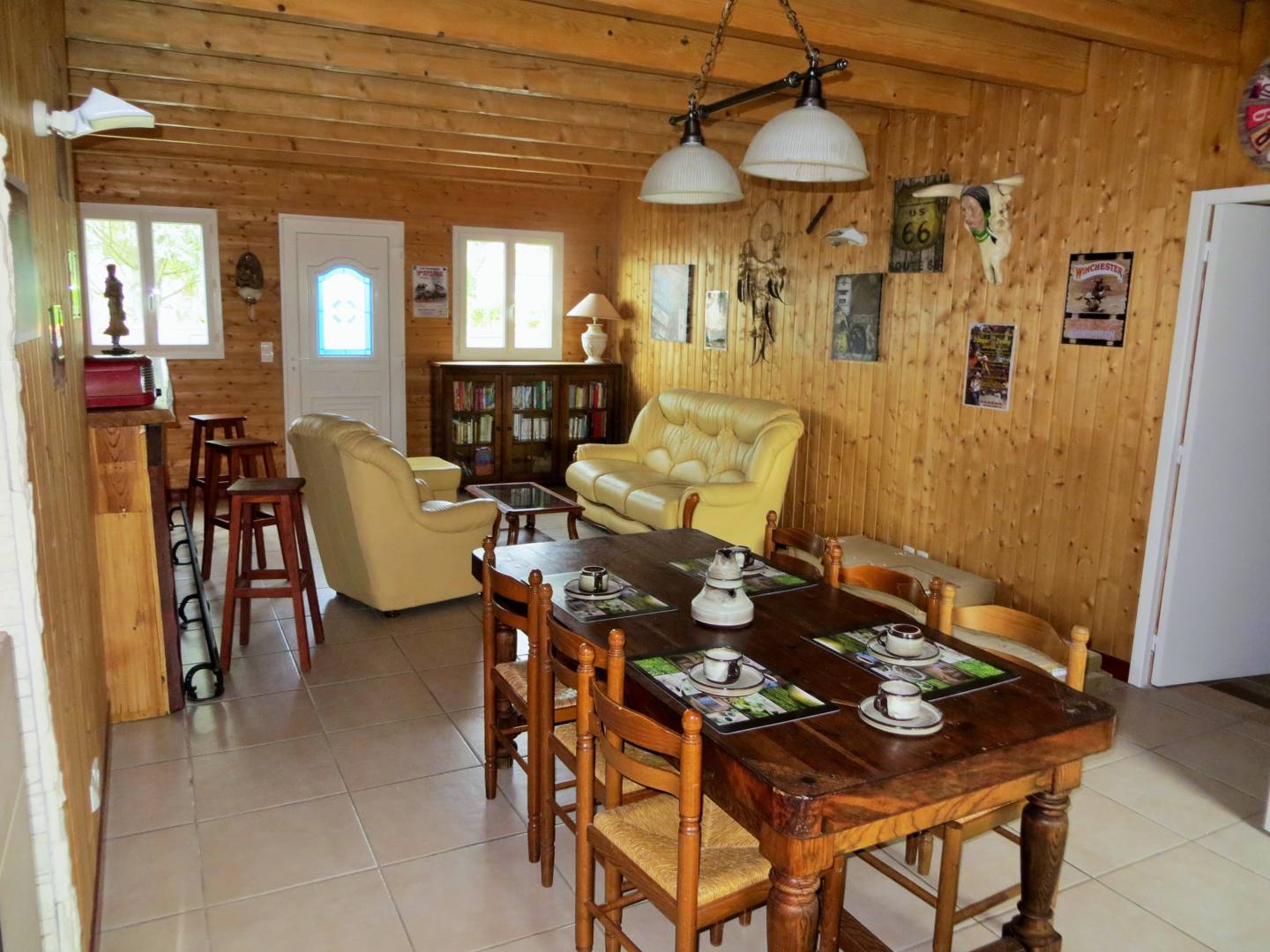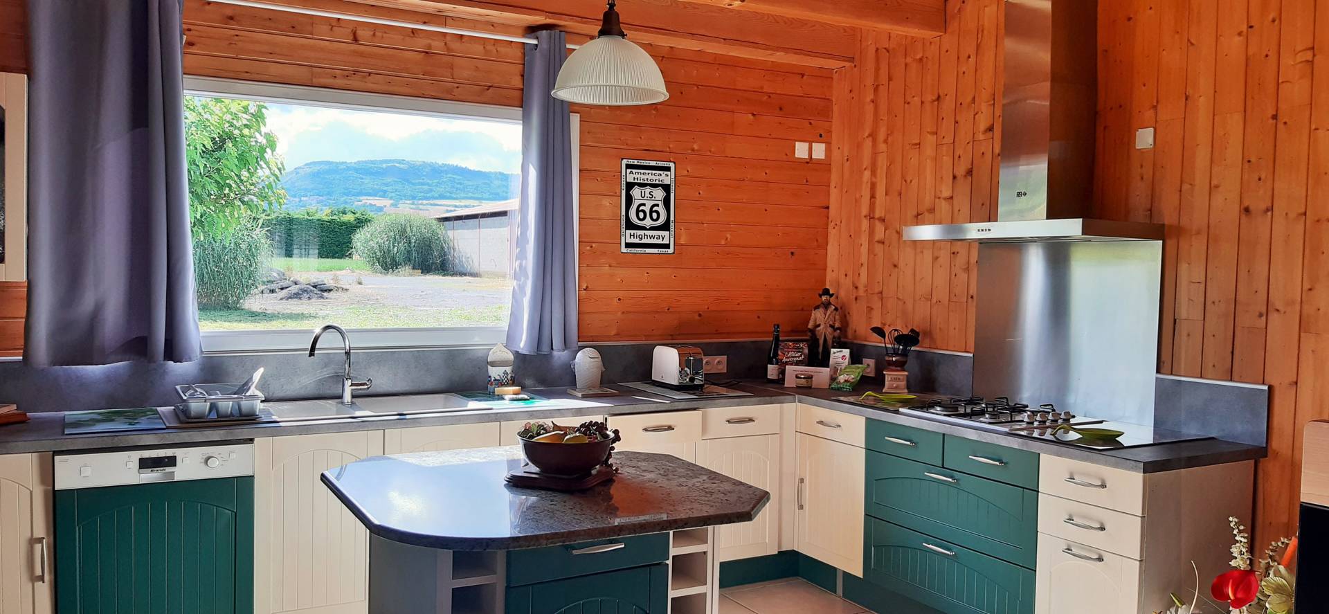 Bienvenue dans notre gîte spacieux de plain-pied avec un confort optimal. La Gariotte se décline d’un vaste séjour/cuisine ouvert avec poêle à granulés, un salon avec bar et bibliothèque, quelques livres et jeux de société vous attendent, une chambre avec un lit 140, une chambre avec 2 lits 90, 1 salle de bain avec douche à l’italienne et un WC indépendant avec lavabo.