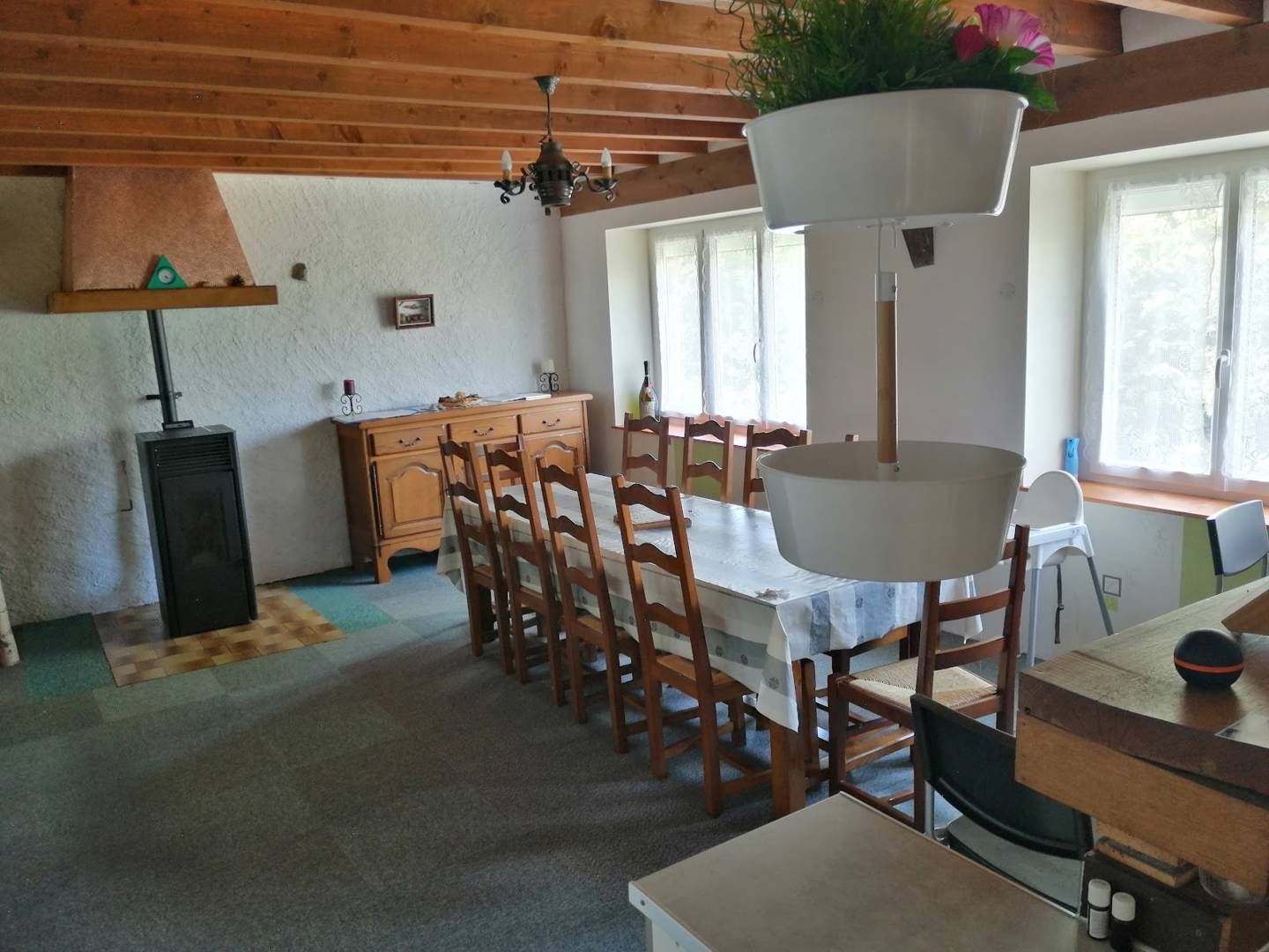 Ces chambres peuvent être privatisées en gîte pour un regroupement familial avec cuisine et séjour communs, capacité d’hébergement pour 25 personnes. Tarif dégressif en fonction du nombre de personnes. Grand salle de 60 m² aménagée (coworking, salle de réunion, vidéo projection, karaoké …) capacité 25 personnes. Situé sur un terrain arboré de 6500 m². Possibilité de garage. Soirées autorisées. Vue sur la vallée de Fades-Besserve.