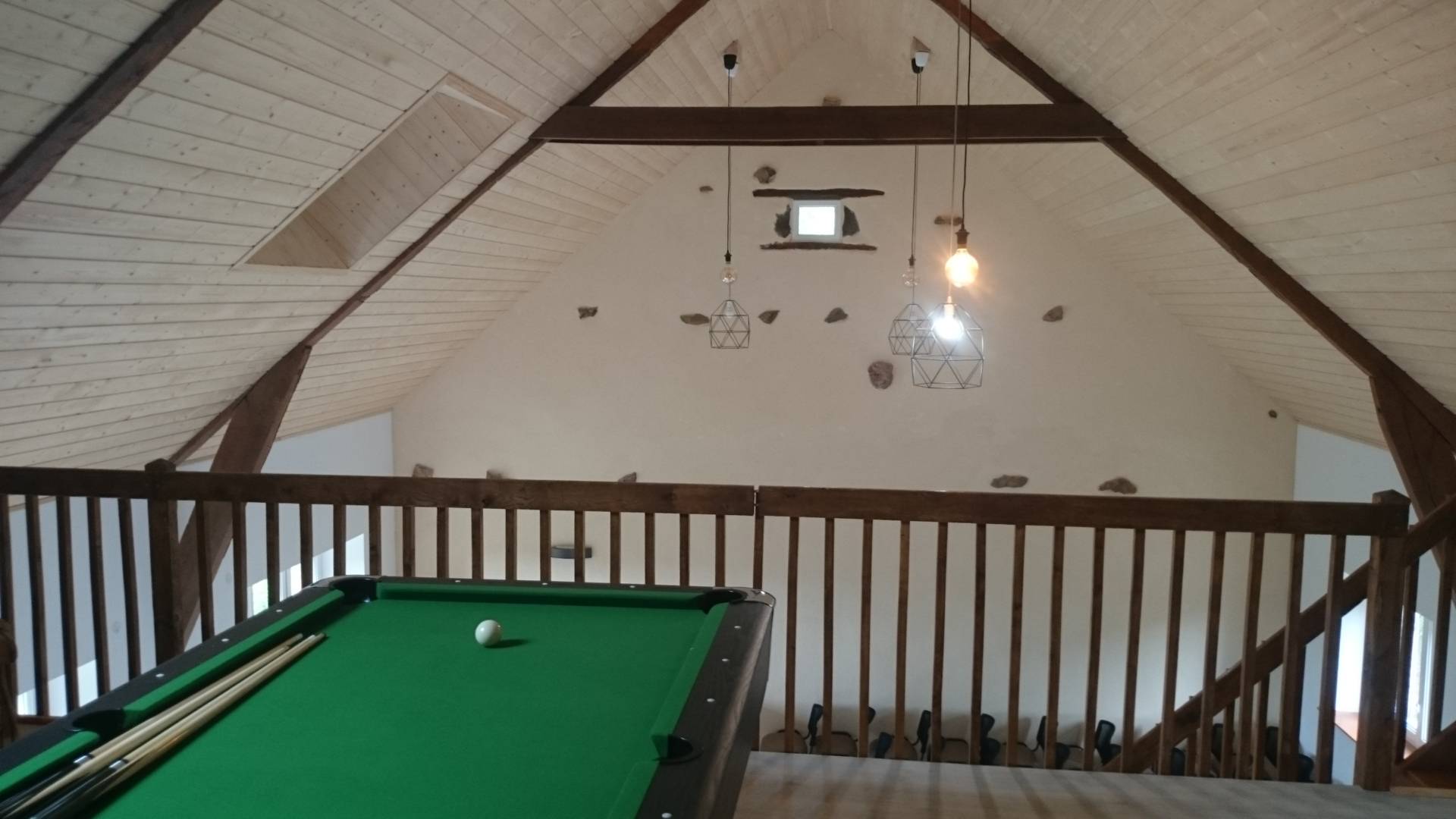 Ecogite tout confort (ambiance chalet), 6 chambres avec jacuzzi privatif, espace détente gym, fitness, salle de jeux, table de ping-pong, billard, baby-foot, terrain de pétanque et étang privé. Salle de 60 m² avec vidéo projection.