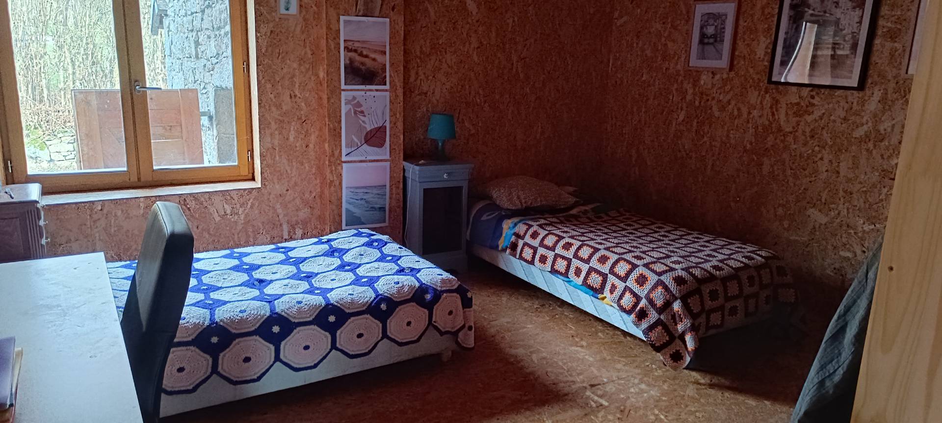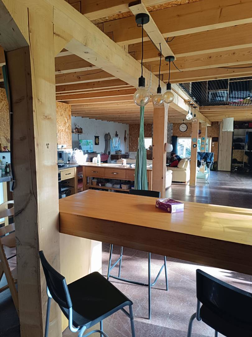 La propriété se compose d’une grange entièrement rénovée, d’une surface habitable d’environ 200 m², implantée sur un terrain d’environ 1 hectare, au sein d’un environnement rural, au cœur d’une ancienne ferme. Le rez-de-chaussée offre une vaste pièce à vivre d’environ 100 m² comprenant un espace salon/salle à manger avec cuisine ouverte entièrement équipée. Cet espace convivial est agrémenté d’un poêle à bois. Un couchage d’appoint est disponible dans cette pièce via un canapé convertible. Un sanitaire est également présent au rez-de-chaussée. À l’étage, le bien dispose de trois espaces nuit répartis comme suit : un dortoir pouvant accueillir 5 personnes, un dortoir pouvant accueillir 4 personnes, un dortoir pouvant accueillir 3 personnes, ainsi qu’un couchage supplémentaire sous forme de lit cabane situé dans le couloir. Un sanitaire est également accessible à l’étage. Les extérieurs se composent de terrasses et de vastes espaces ouverts sur un terrain d’environ 1 hectare, offrant un cadre calme et naturel. Des équipements de type barbecues sont mis à disposition des occupants. L’ensemble est situé dans un environnement champêtre, propice au repos et aux séjours en groupe.