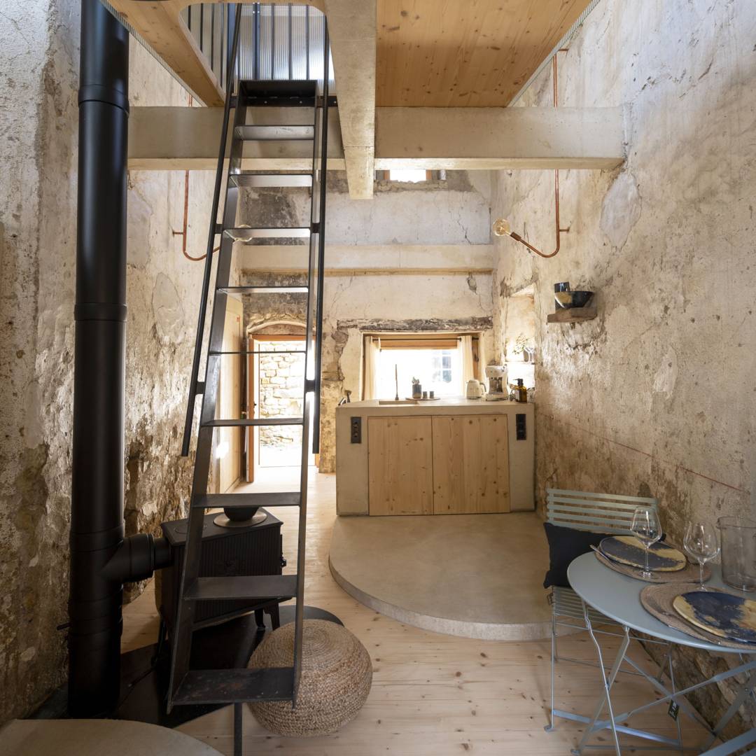 Cet hébergement entièrement réhabilité avec des matériaux nobles vous plongera au cœur du XVe siècle, la loge présente une architecture brute où se mêlent pierre, béton et acier, travaillés par des artisans locaux. L’absence d’isolation et de chauffage centralisé préserve l’authenticité du lieu, avec un chauffage assuré par un poêle à bois.. Conçu pour accueillir 2 personnes sur 3 niveaux, avec son coin nuit perché dans une cabane en verre, sa pièce de vie ouvrant sur une petite terrasse privative et sa cave voûtée aménagée en espace bien-être avec sauna finlandais et douche.