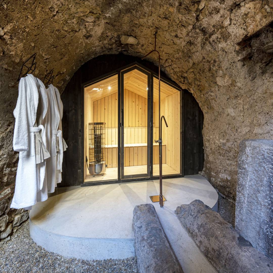 • Sous-sol : une cave voûtée abrite un sauna finlandais et une seconde douche, pour un moment de détente dans un cadre exceptionnel.
