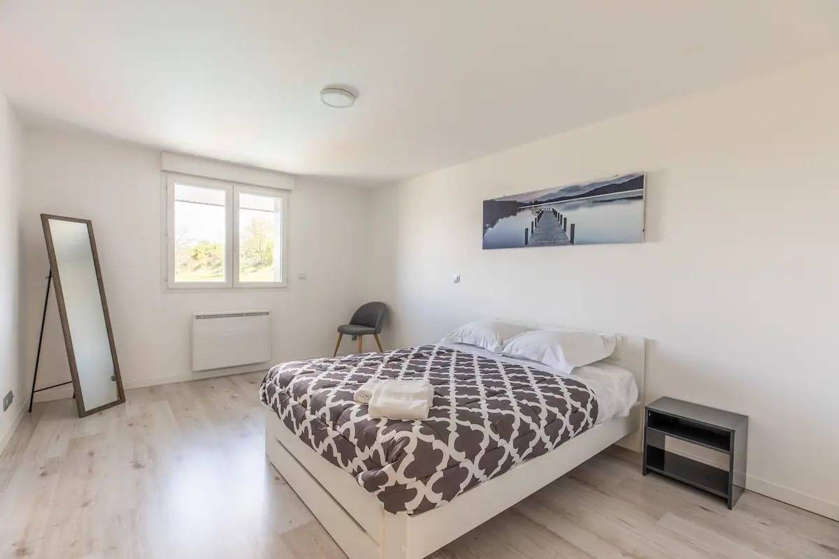 Pour vos vacances en famille ou vos voyages d’affaires la maison peut héberger jusqu’à 6 personnes, avec ses 3 chambres spacieuses et bien aménagées (3 lits en 140).