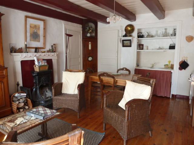 Au rez-de-chaussée, un coin séjour/salon avec petit cheminée, TV et un coin cuisine bien équipé ( cuisinière+four à gaz,micro ondes, réfrigérateur+congélateur, divers petits appareils électriques, cocotte minute et vaisselle).