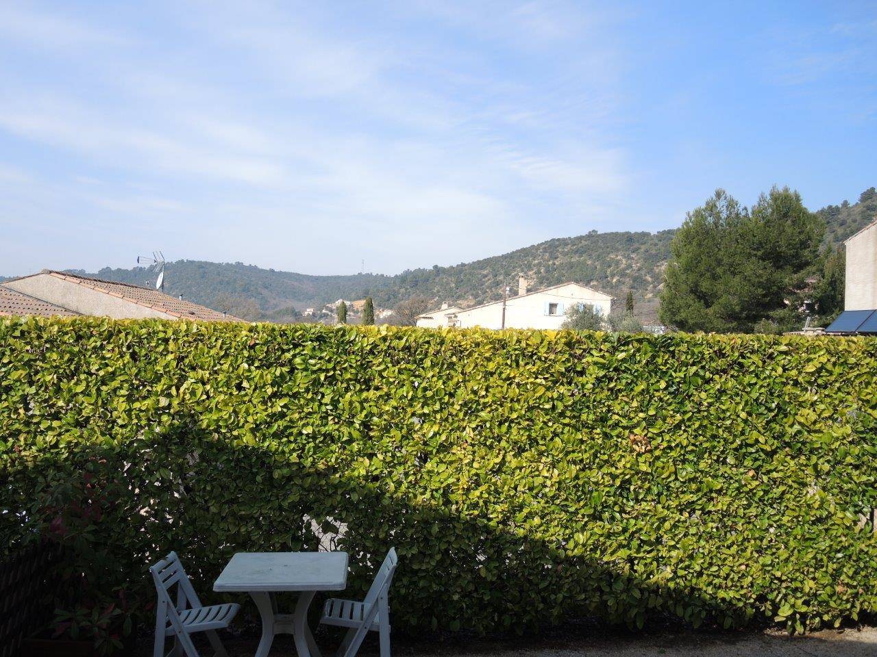 Accès par une impasse à un grand jardin équipé de transats, barbecue, mobilier de jardin, toboggan…