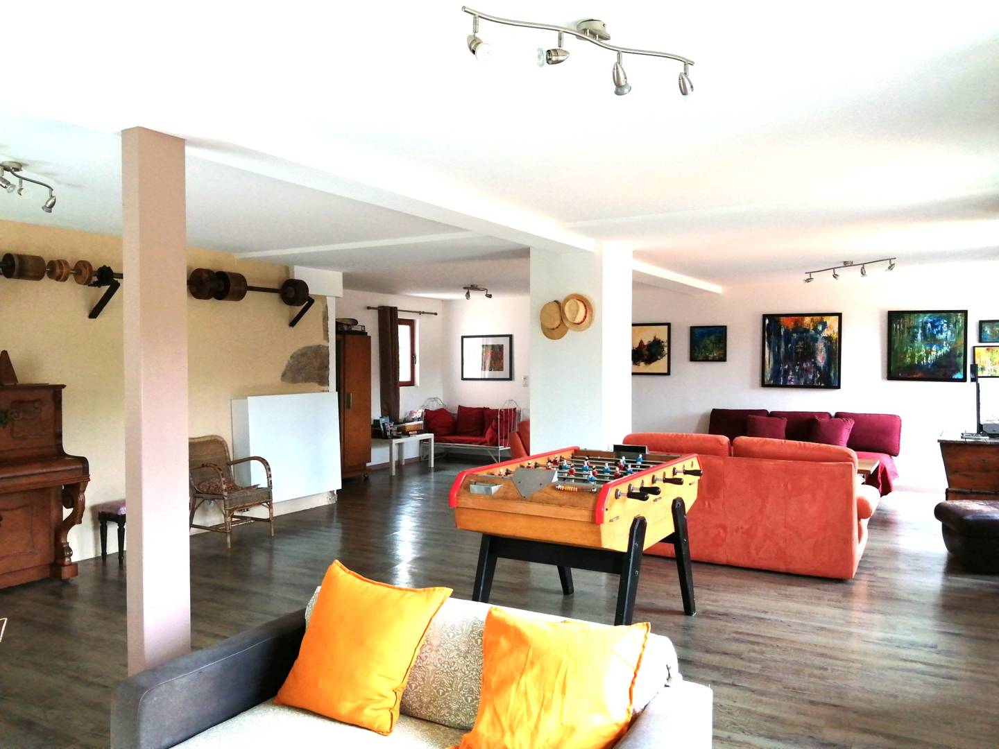 Loin des nuisances sonores et visuelles, le gîte peut-être un point d’ancrage pour la découverte de la région. Au rez-de-chaussée: une entrée sur la salle à manger avec cheminée décorative, un accès à la terrasse sous abri, une cuisine aménagée, un coin buanderie, un salon/salle d’activités de 75 m², un couloir avec sanitaire et deux chambres avec salles d’eau et WC. À l’étage: un couloir dessert deux chambres avec salles d’eau et WC indépendants. À l’extérieur, deux terrasses couvertes, une terrasse ombragée, piscine, terrain de pétanque et table de ping-pong. Une balançoire pour les petits. Terrain arboré de 3000 m²