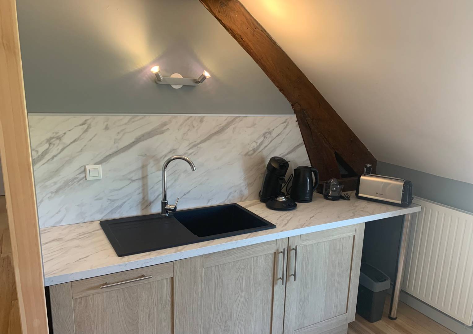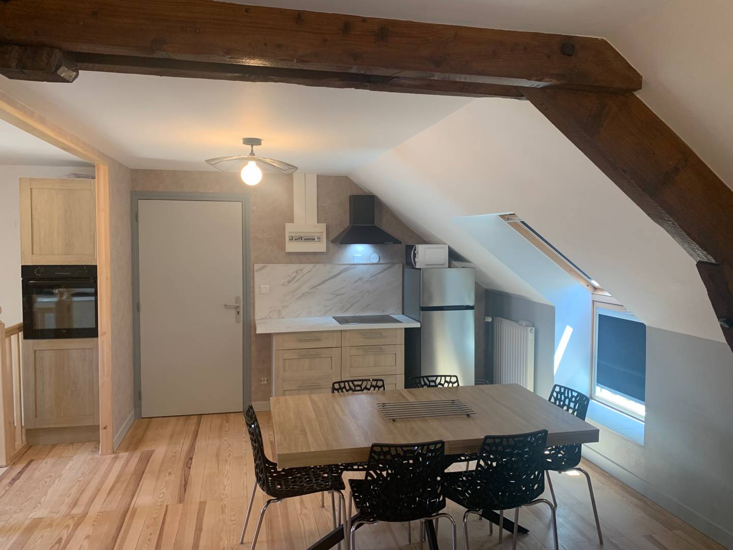 Une cuisine entièrement équipée avec lave-vaisselle, four, four micro-onde, réfrigérateur avec congélateur,cafetière Senseo, plaque induction – la liste de l’équipement complet sera dans l’inventaire lors de l’état des lieux.