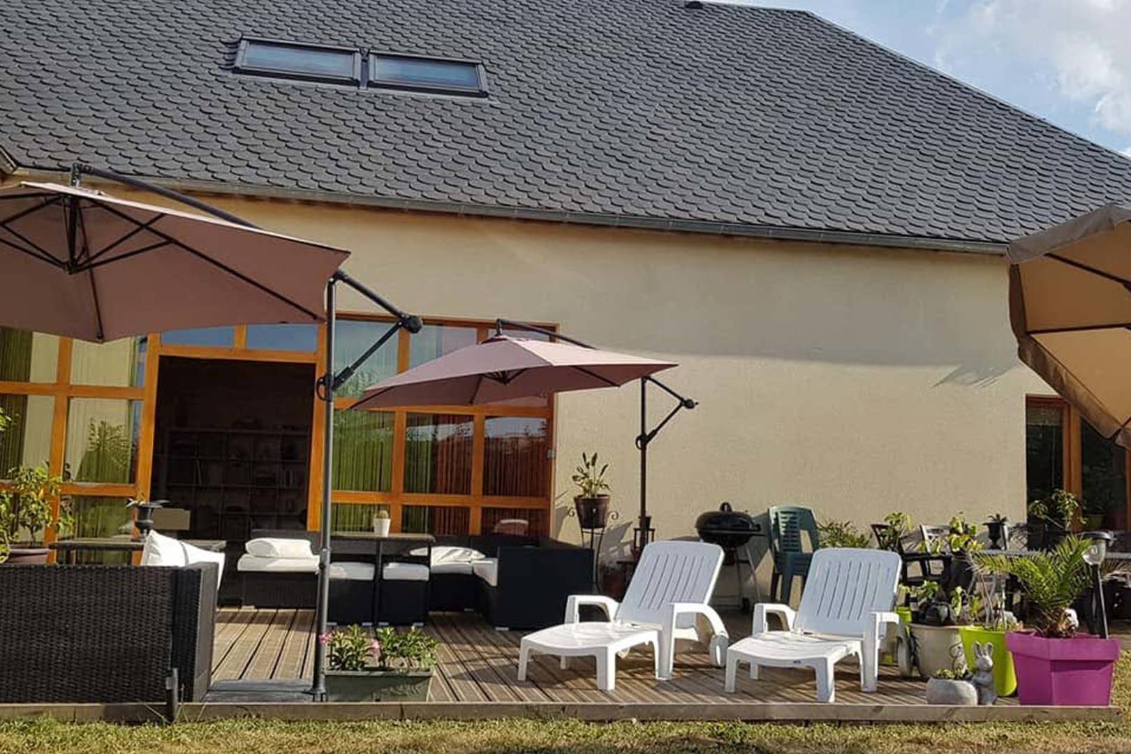 Le tout donnant sur une terrasse avec des tables et chaises ainsi qu’un mange debout et barbecue avec une vue incroyable sur Besse mais surtout une vue unique sur le Sancy d’un côté et sur la Dent du Diable et les Monts du Forez Livradois de l’autre côté.