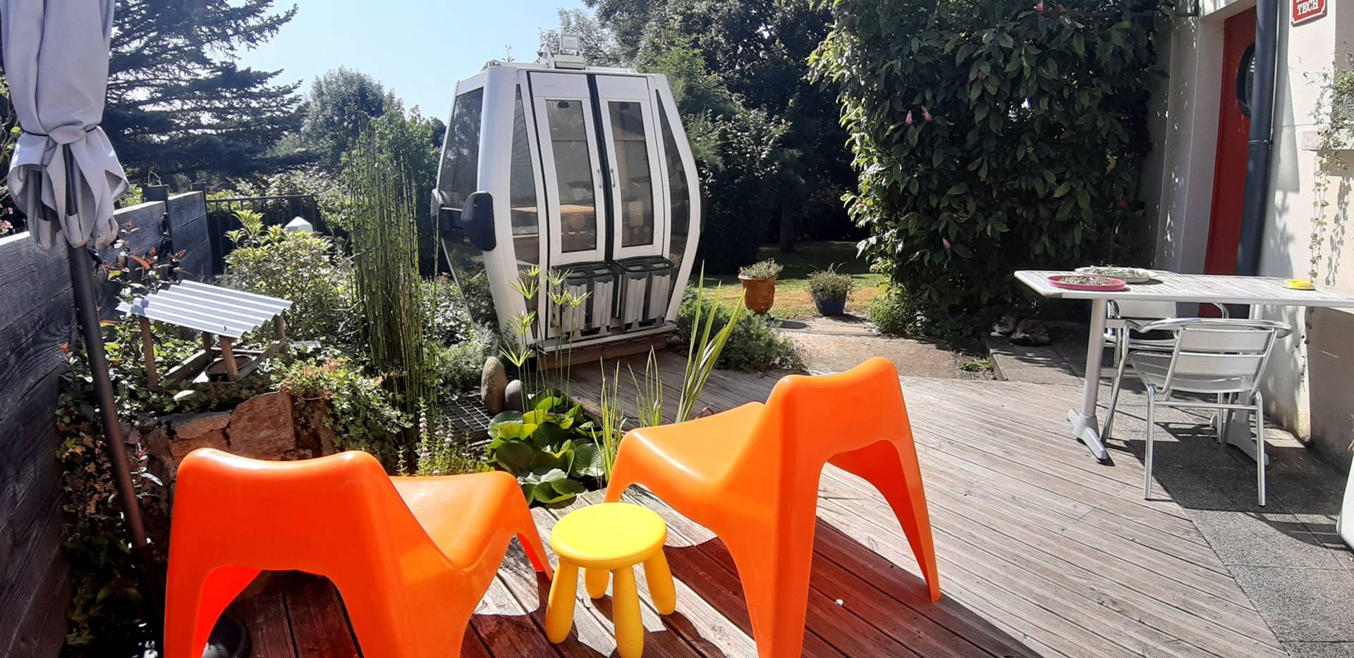 Vous pourrez profiter, en toute liberté, de la terrasse et… bien sûr de l’ancienne télécabine de ski pour prendre vos repas, bouquiner ou chiller…