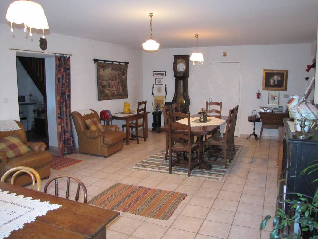 En commun : salle à manger avec cheminée, salon (bibliothèque), cour, balcon. Coin cuisine à disposition.