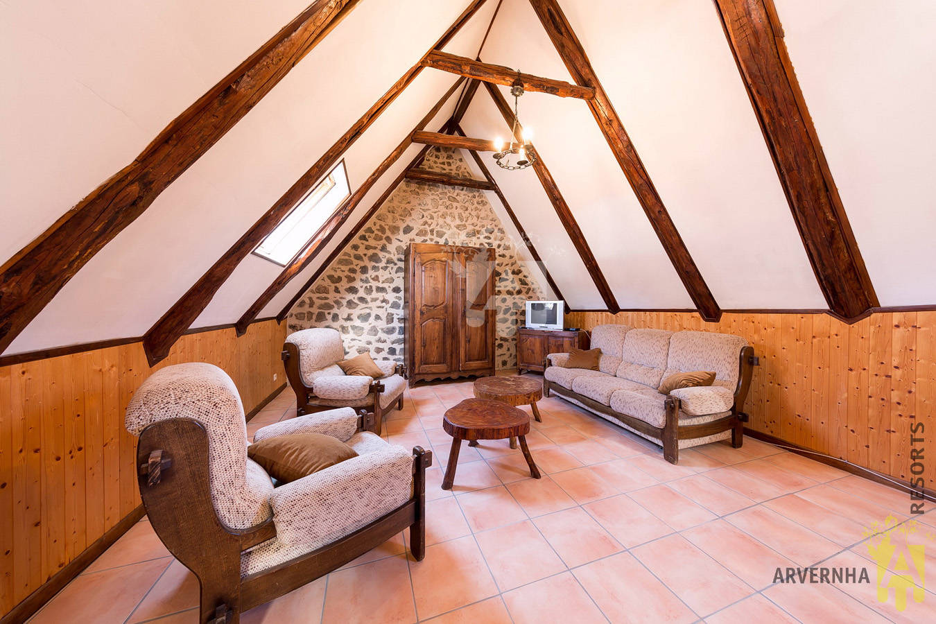 Pour couronner le tout, La Vie de Château dispose d’un jardin clos et arboré côté sud qui, outre sa fonction de tampon entre le gîte et le village, permet également aux enfants de jouer en toute sécurité et aux parents de profiter du soleil de midi pour prendre une pause décontraction sur un banc en pierre. C’est toutefois sur la terrasse à l’arrière de la maison que vous apprécierez la fraîcheur de l’ombre en été ou le soleil du soir pour vos repas à l’extérieur en toute intimité et en toute quiétude en veillant sur les vergers voisins. L’intérieur du gîte n’est pas en reste, dès votre entrée, laissez-vous imprégner par le charme des véritables maisons auvergnates qui empreint le confort d’aujourd’hui avec beaucoup de goût : poutres et pierres apparentes, de petites ouvertures qui laissent deviner l’épaisseur des solides murs, un cantou authentique dans lequel on imagine aisément les longues veillées qui ont pu s’y dérouler.
