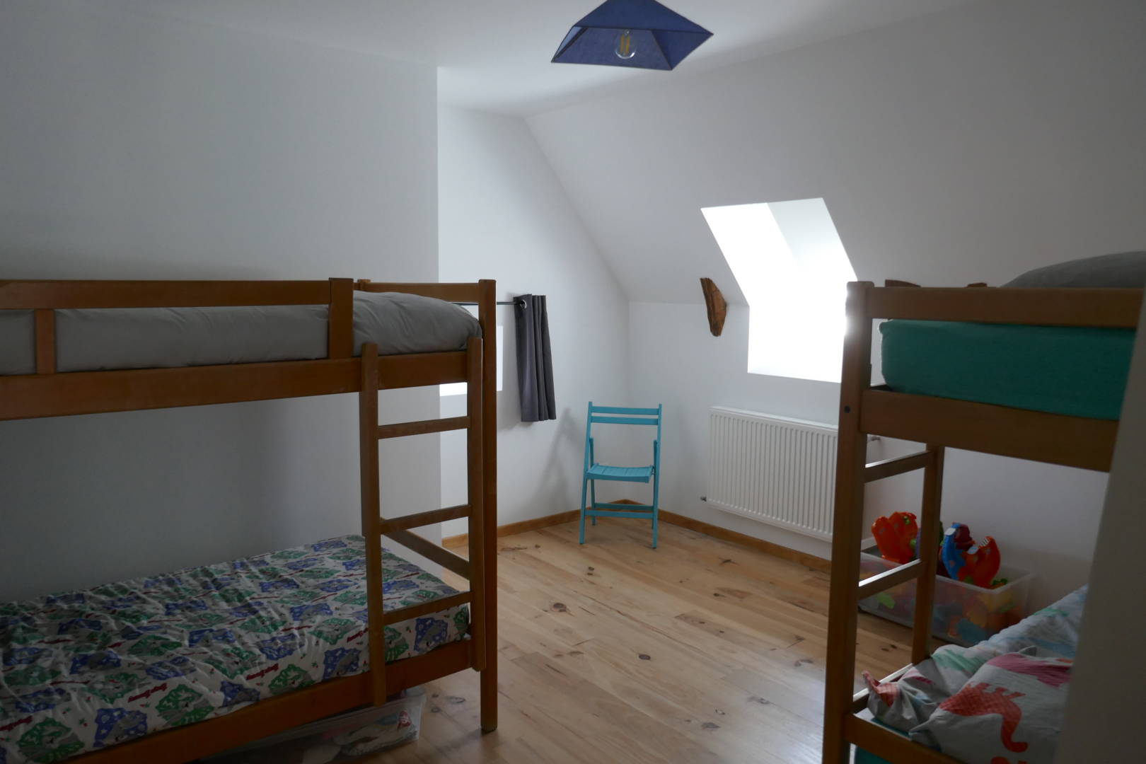 160 m², 3 chambres (1 lit 140 x 190 / 1 lit 160 x 190 / 2 lits superposés), Séjour + mezzanine, 1 salle de bain + wc au rdc, une salle d’eau à l’étage avec wc et douche. Terrasse avec salon de jardin. Barbecue.