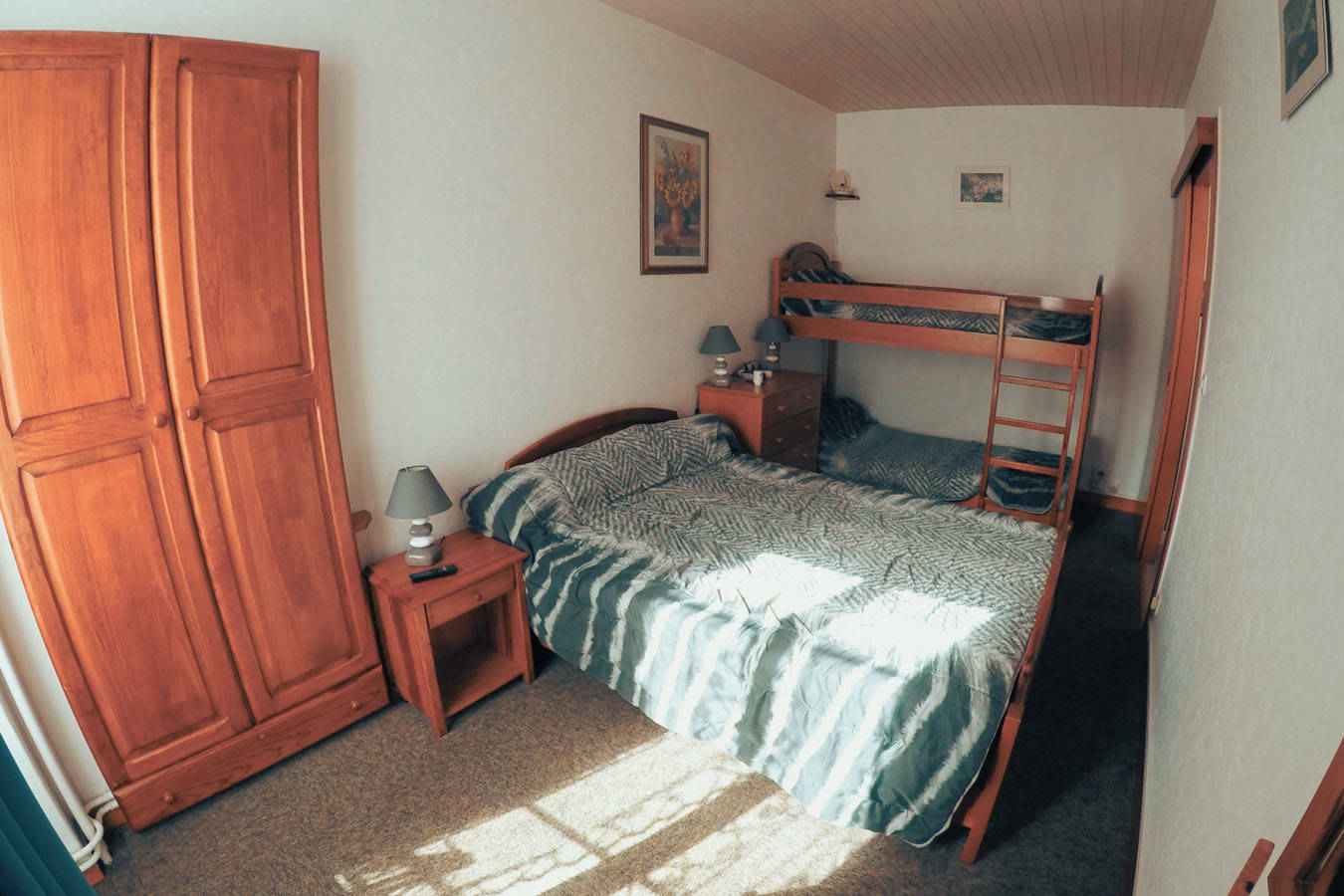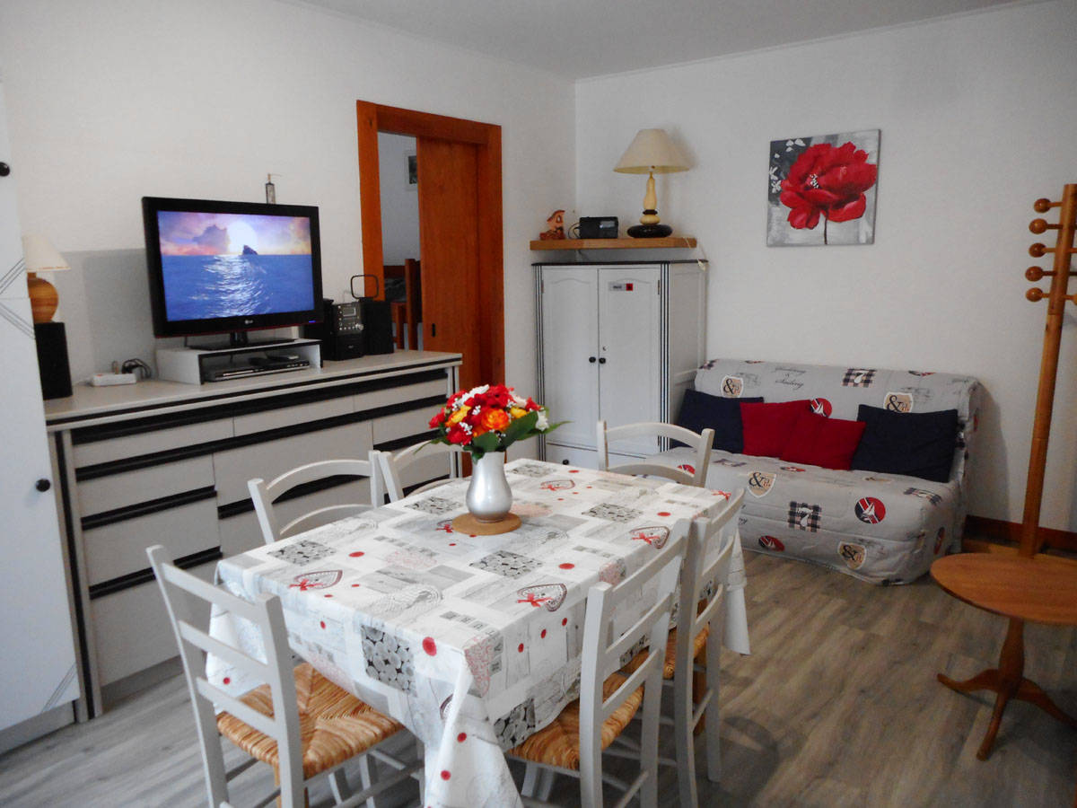 Appartement comprenant une chambre avec 4 couchages (1 lit de 2 personnes + 2 lits superposés) avec placard de rangement. Une pièce à vivre avec télévision, Wifi et banquette BZ (2 couchages). Un espace dédié au rangement du matériel de skis dans le placard de l’entrée. Une salle de bain avec douche et WC. Une cuisine avec four, micro-ondes, lave-vaisselle, ustensiles de cuisine et tout le nécessaire. Les couvertures et couettes sont fournies.