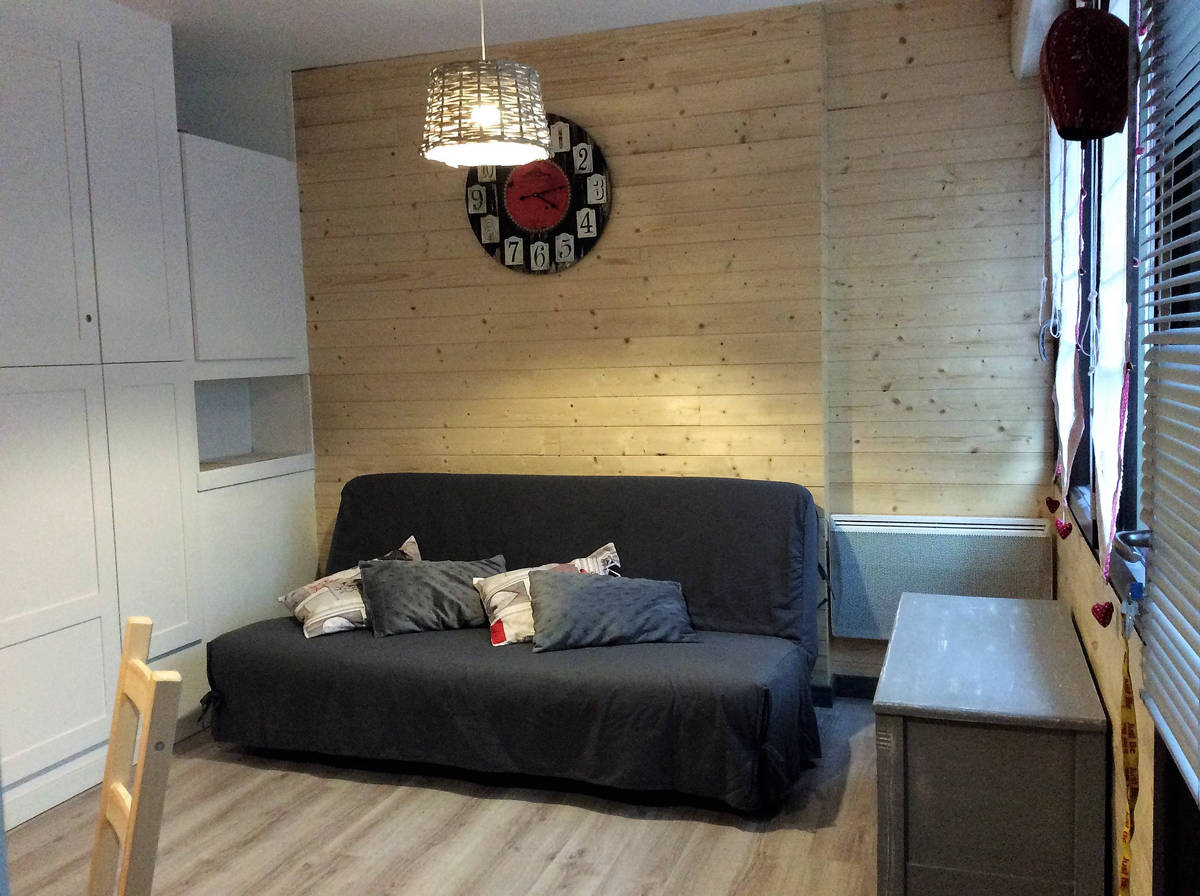 Appartement 5 personnes situé au rez de chaussée, exposé Sud-Ouest vue sur la Sancy. A 300 mètres des Thermes et à 200 mètres des commerces. Stationnement gratuit en face de l’appartement ; navette à 30 mètres. Tout confort, 2 chambres avec lit de 140, WC séparés et canapé lit dans le séjour.